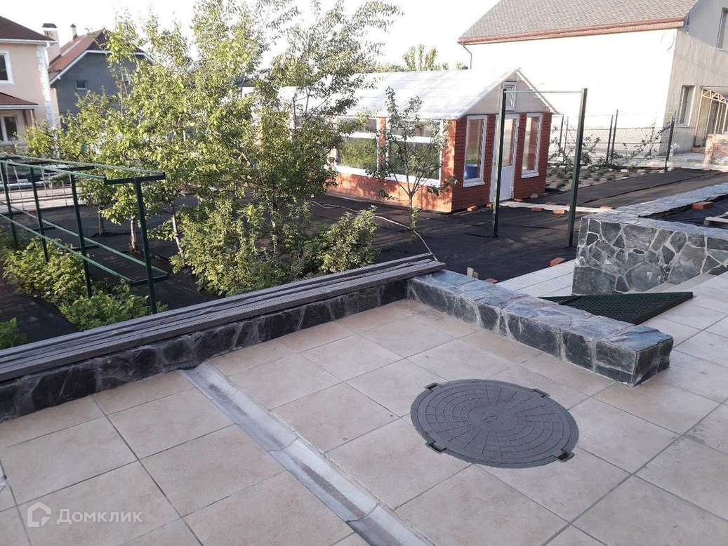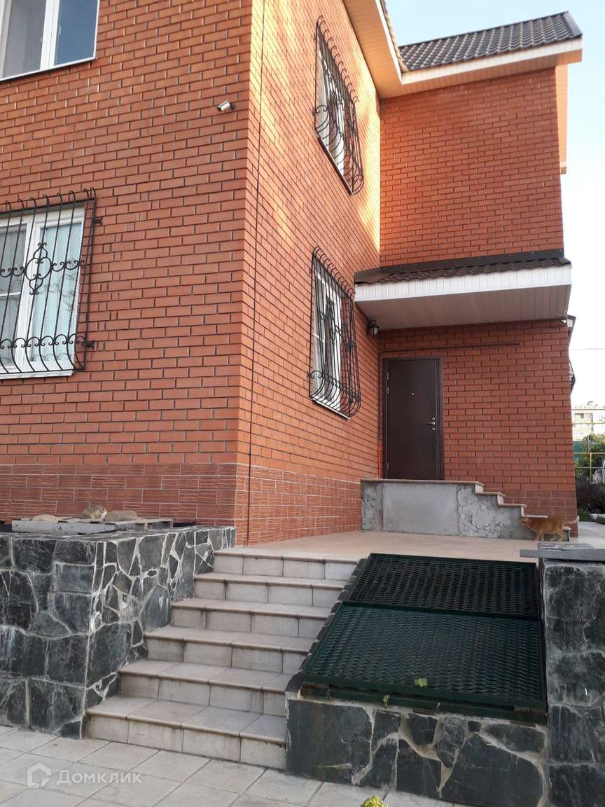 Крыльцо дома большое с бетонной стяжкой, часть которого отделана натуральным камнем черного цвета.Слева от крыльца два капитальных гаража, размером (4*6). В одном из гаражей имеется погреб, в другом ванная со смесителем. Ворота гаражей - рольставни.