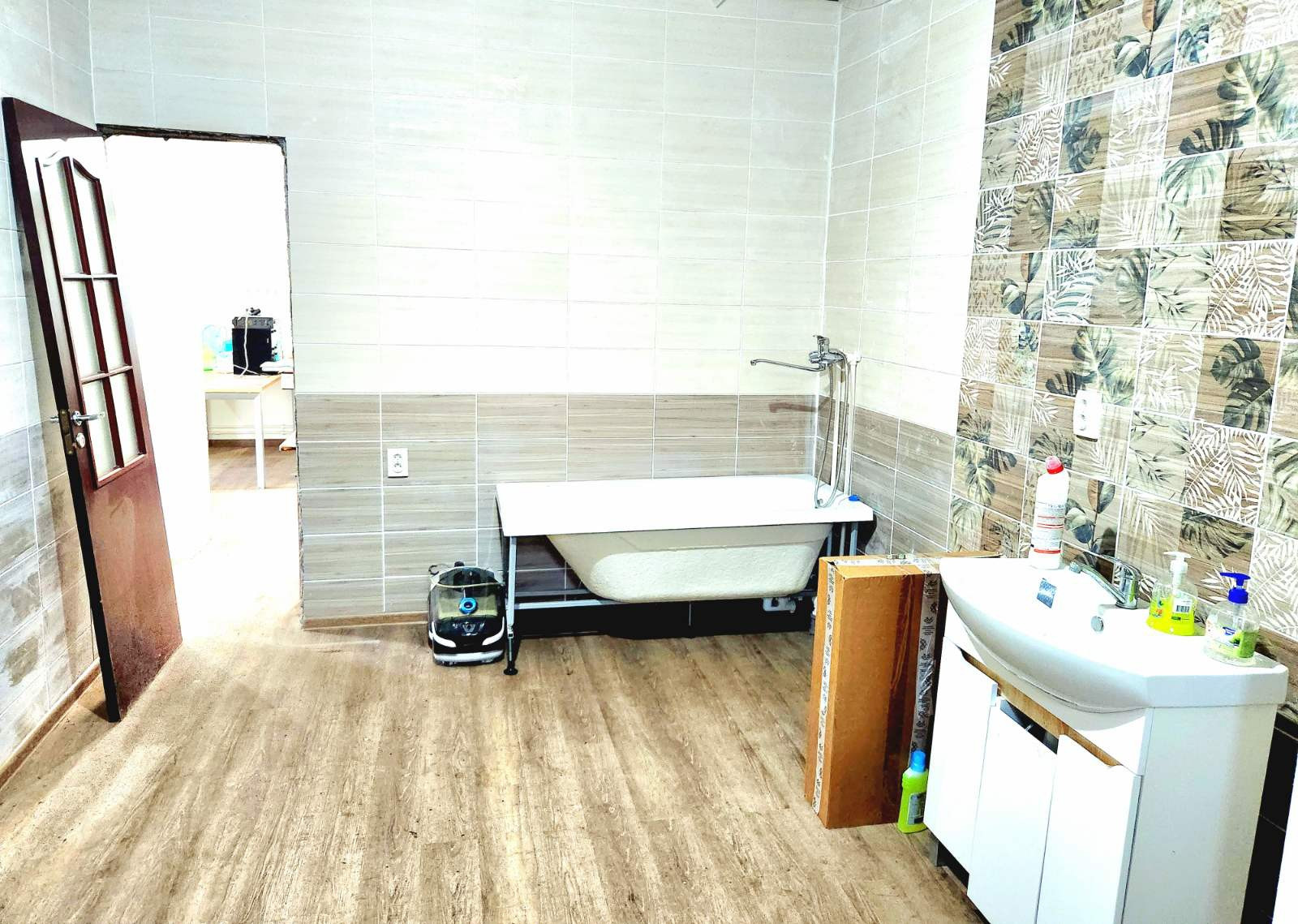 Сделан частичный косметический ремонт в 2023 году, установлены действующие розетки, на первом этаже: жидкие обои, напольное покрытие выполнено ПВХ плиткой, в ванной комнате установлена новая сантехника, и выложена дизайнерская плитка, на кухне установлен гарнитур 3х3 метра. На втором этаже деревянные потолки и пол, стены под шпаклевку. В доме современная просторная планировка совмещенная кухня гостинная 45 м2 с панорамным окном 2х2м, большая ванная комната 13 м2, на верху свободное пространство 63м2 под спальные комнаты.