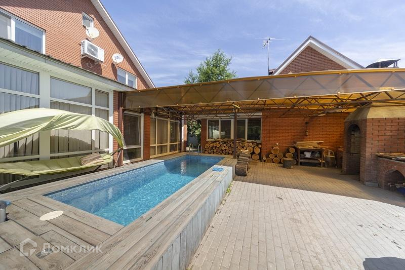 Земельный участок площадью 7 соток, на котором также расположена баня, гараж, бассейн.