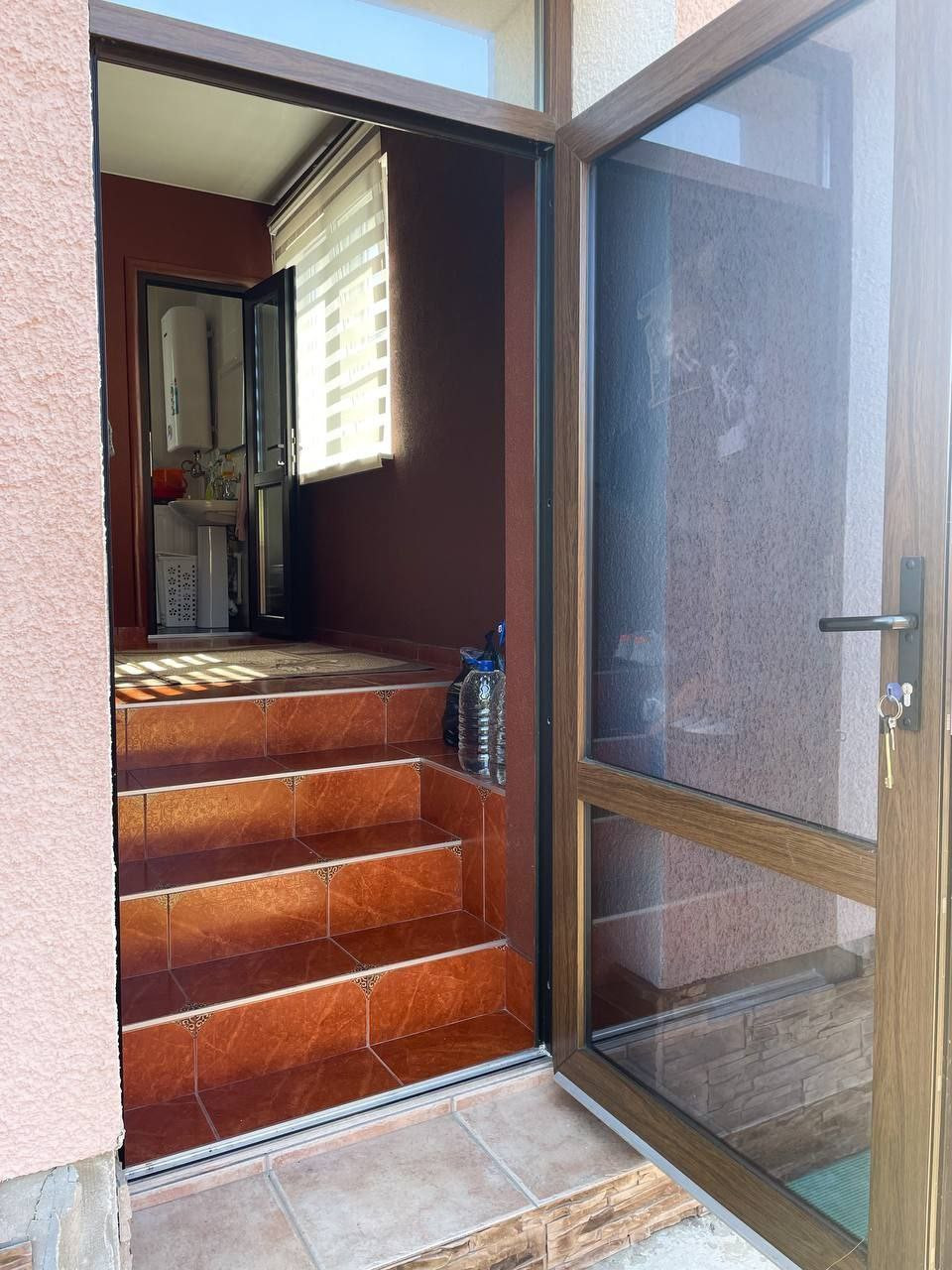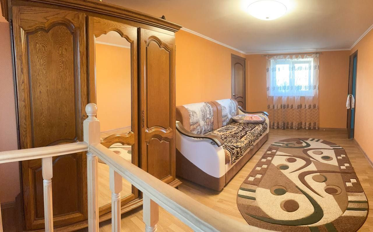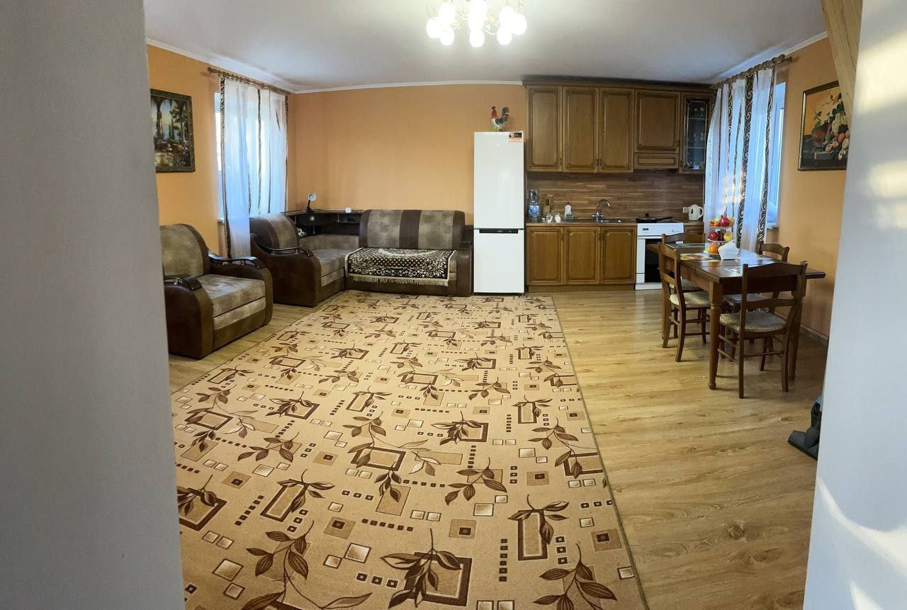 Площадь дома 100м, утеплен блоками, отштукатурен. На 1-ом этаже столовая 30м, прихожая  и санузел ( душевая кабина, туалет, водонагреватель). На 2- ом этаже 3 спальни.