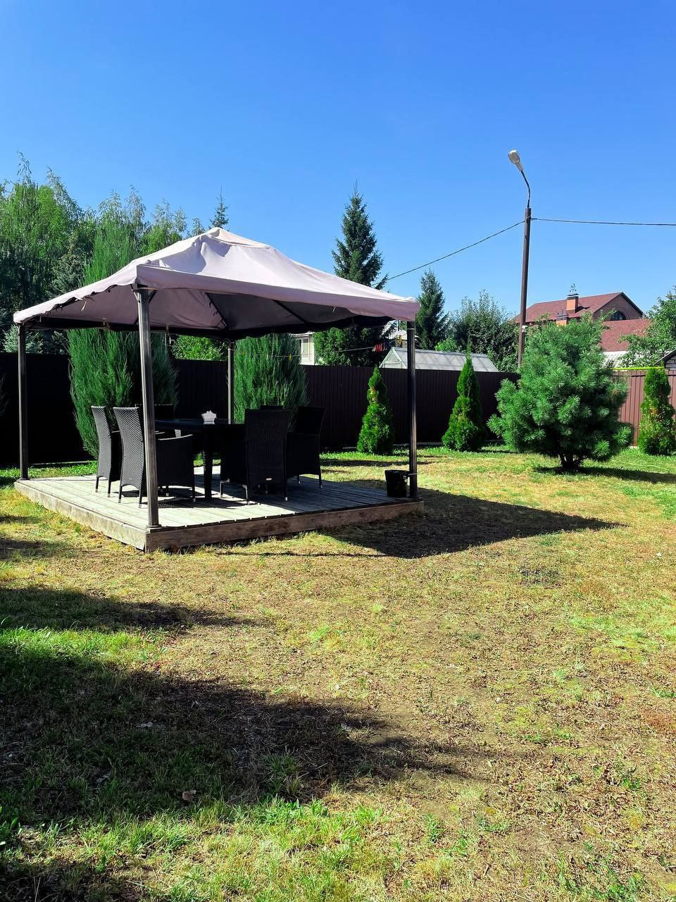 На территории имеется отдельностоящий банный комплекс на дровах, зона для барбекю , зона отдыха - беседка, окруженная высоким можжевельником, создающим впечатление, что находишься в лесу).