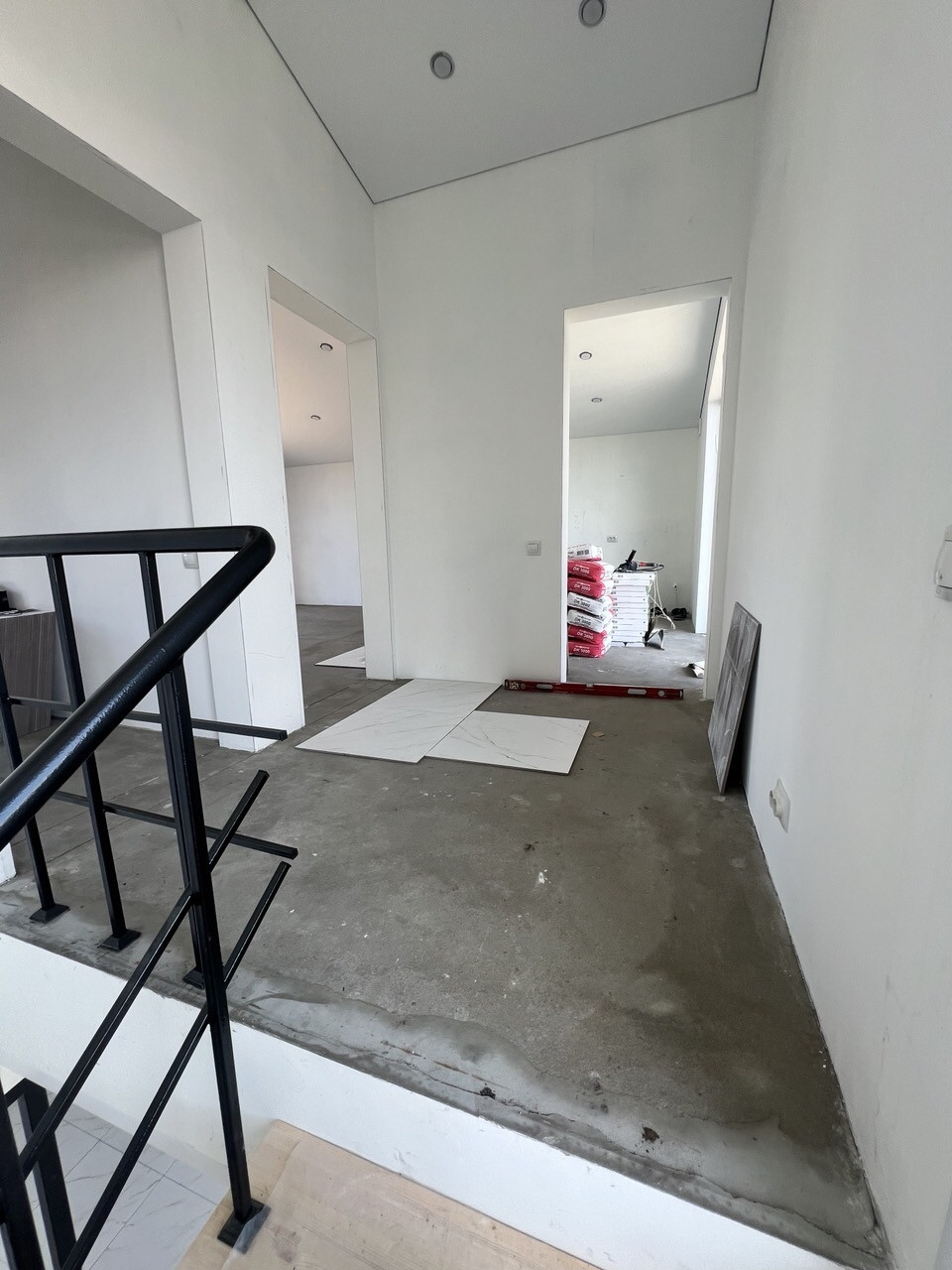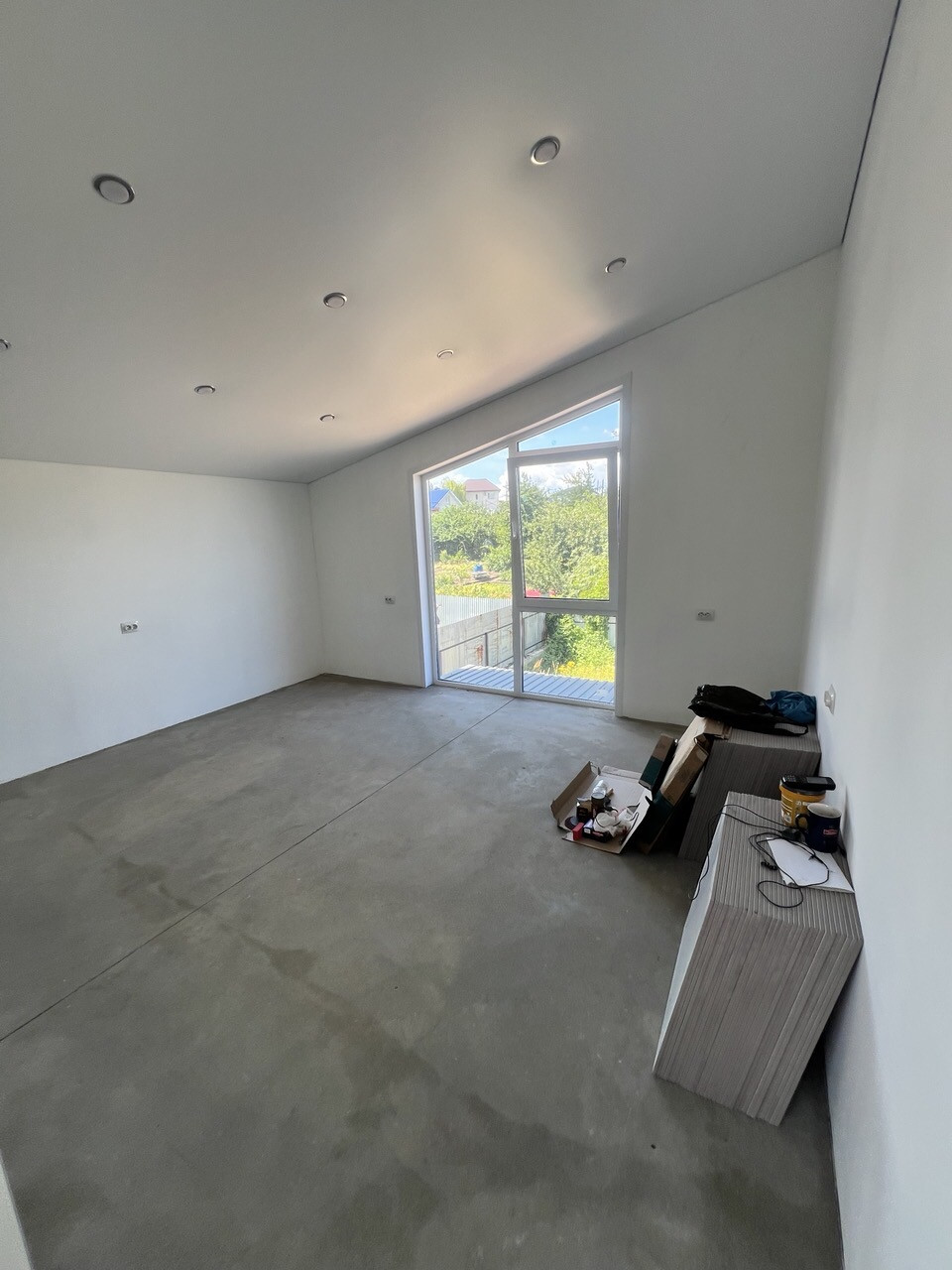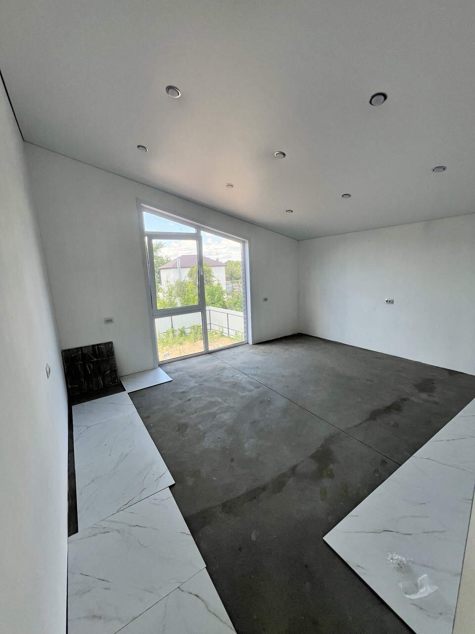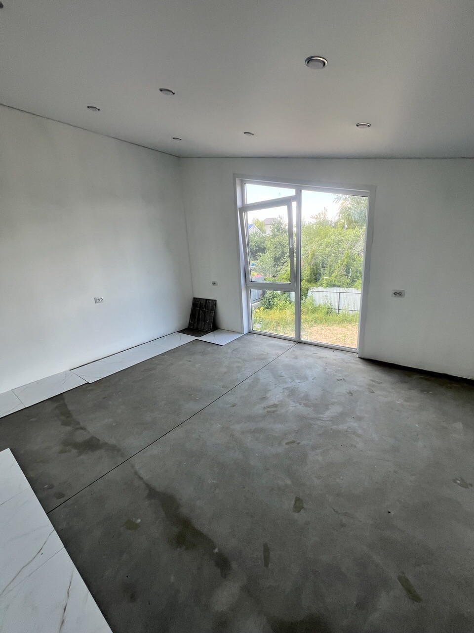 Внутренняя отделка: стены подготовлены к проклейке обоев, в санузлах к плитке, на полах ровная финишная стяжка с системой водяного отопления теплый пол по всему дому, и выложена плитка. Установлены откосы окон и дверей. В доме много розеток, в том числе с усиленным кабелем в кухонной зоне. Во всех помещениях натянут бельгийский натяжной потолок с элементами освещения ( точечные светильники). Все оконные конструкции со специальным у/ф напылением, ламинацией и немецкой фурнитурой.