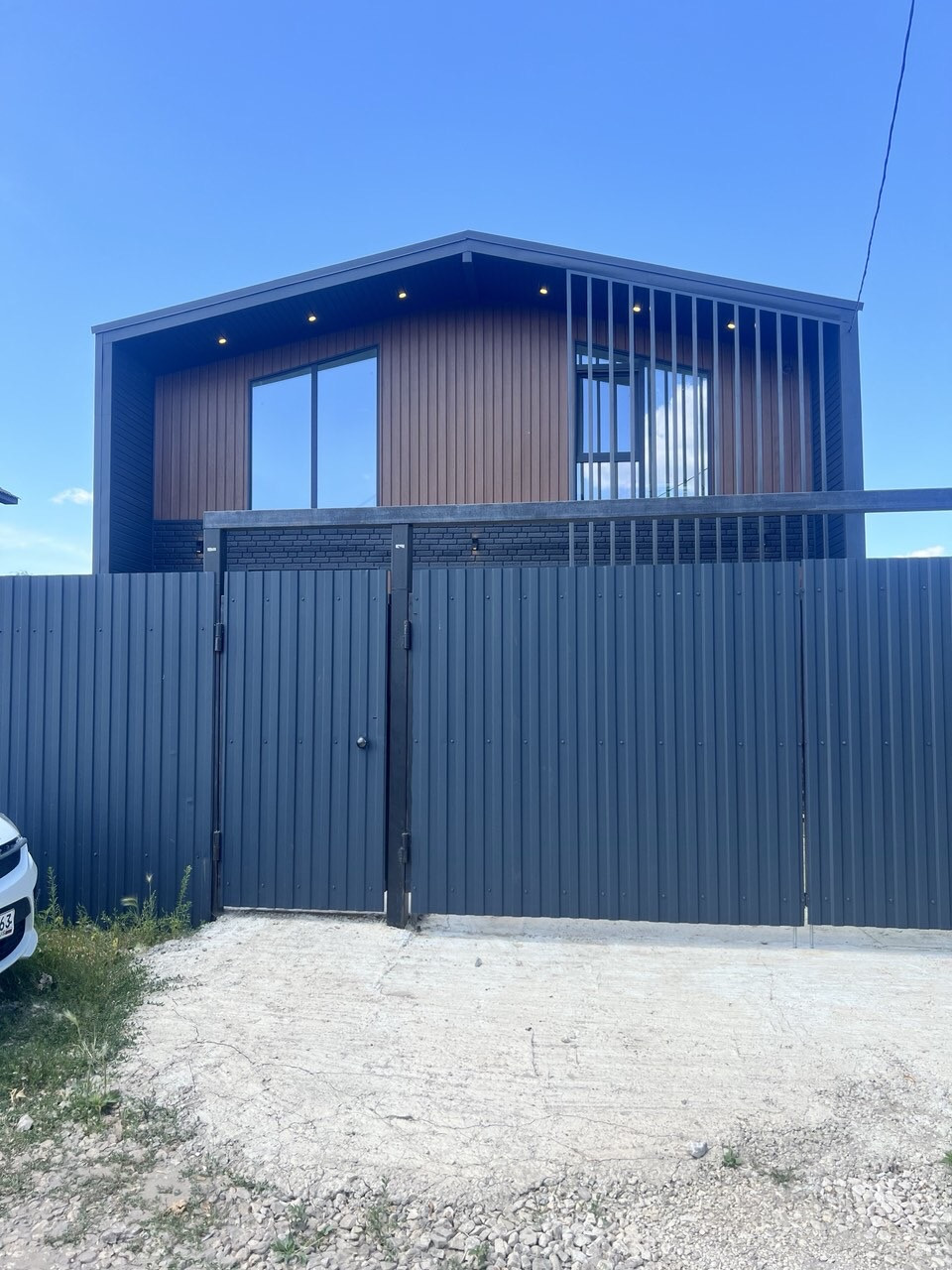 Задняя входная группа 2.5 м2 с навесом и освещением.