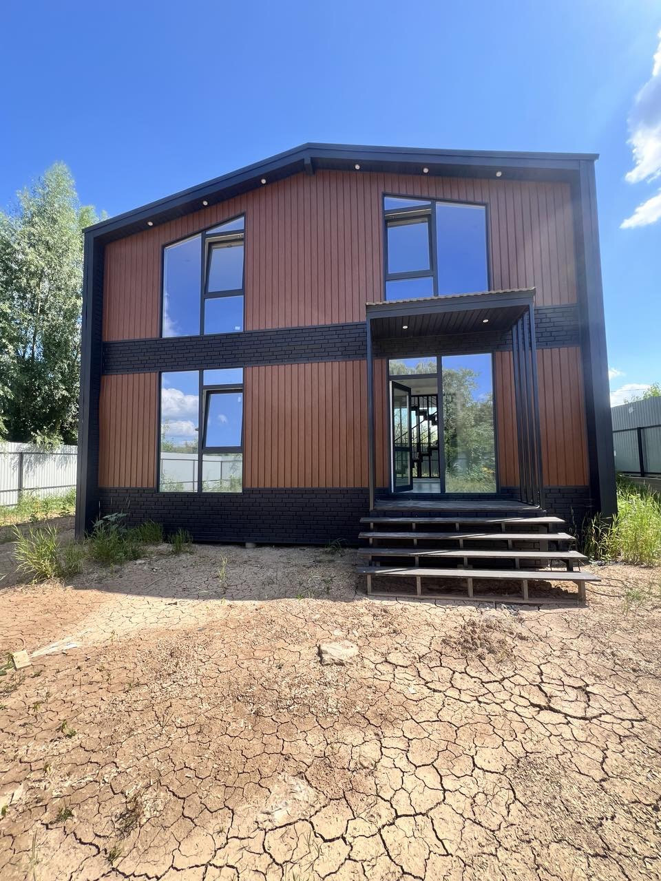 Коттедж построен на 2,5 м ЖБИ сваях с большим запасом прочности (марка бетона 350). Общая площадь 108 м2, высота потолков 2,70 м.