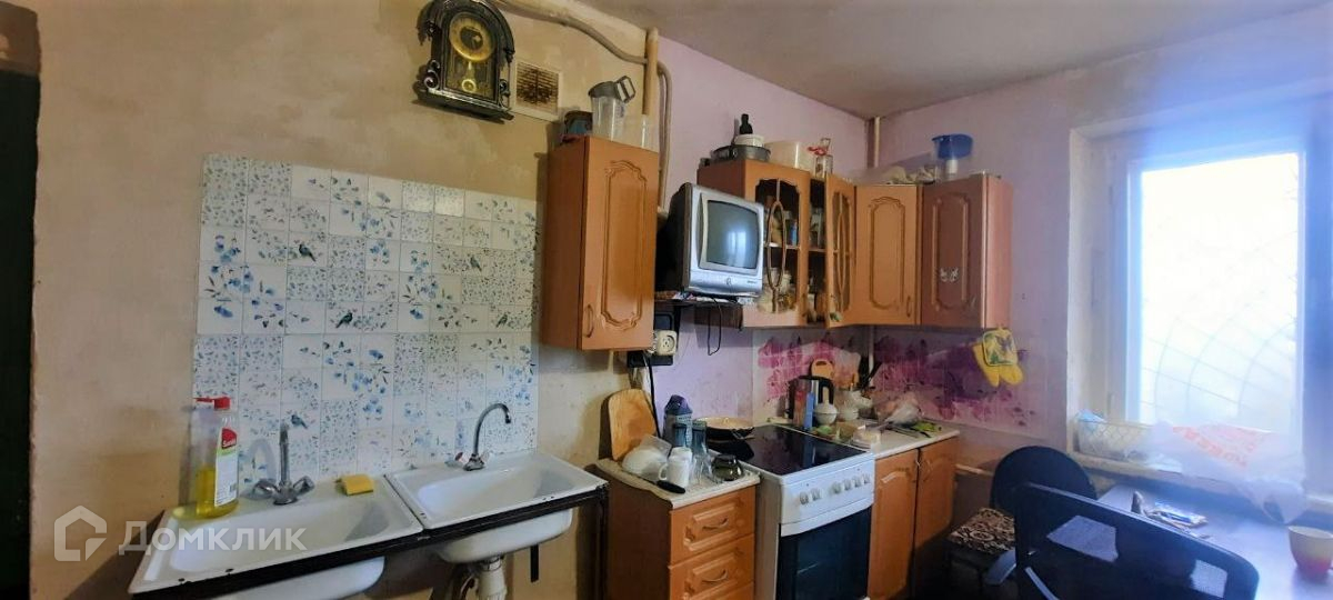 Пластиковое окно, полы покрыты линолеумом, чугунная батарея, дверь железная. Санузел и душ на четыре комнаты. На кухне в обеденной зоне новым хозяевам, остается кухонный гарнитур.