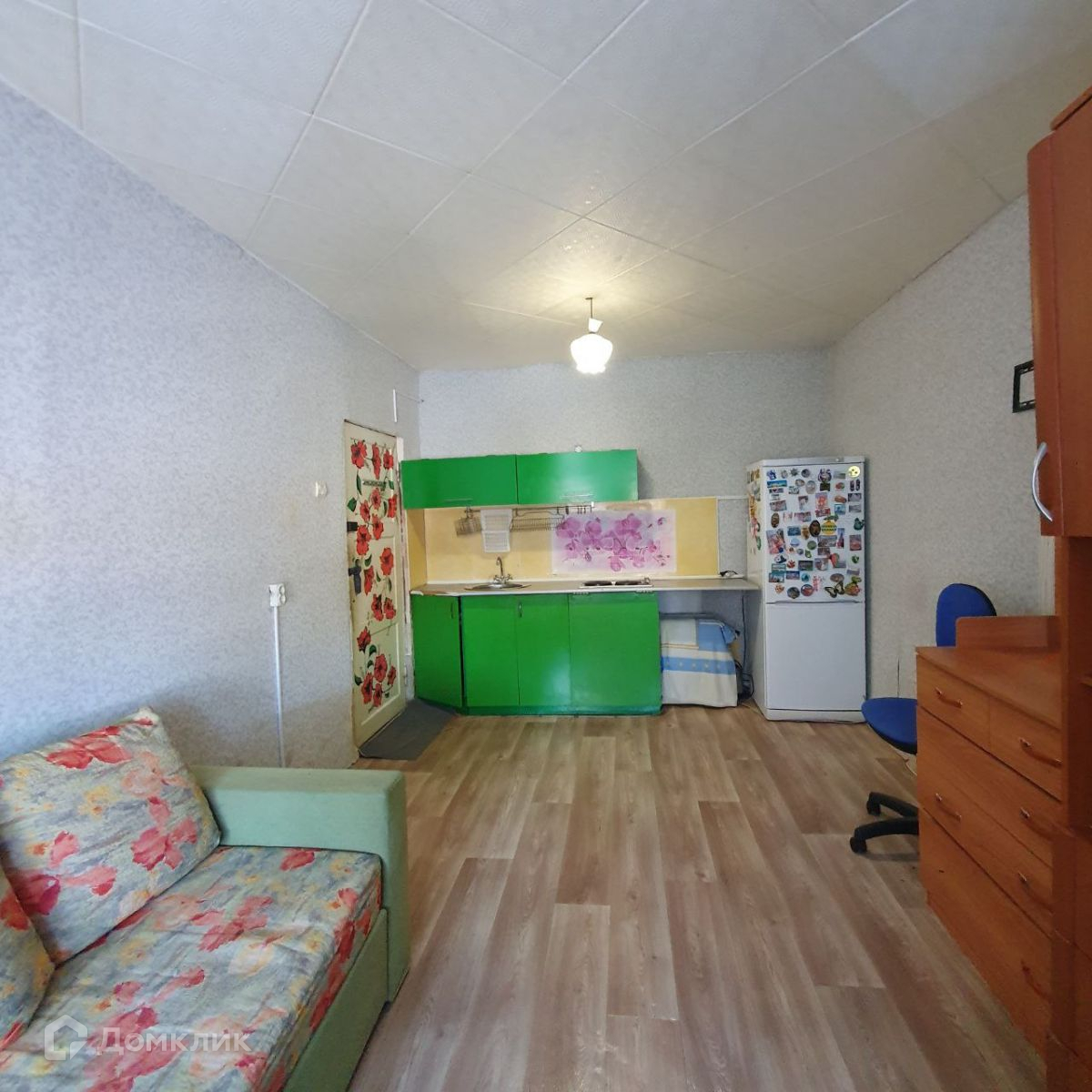 Продается комната с косметическим ремонтом, пластиковое окно ,  проведена вода в комнату ,а также выведены трубы для машинки автомат , встроенная электрическая плита, частично остается мебель.  Санузел на этаже.