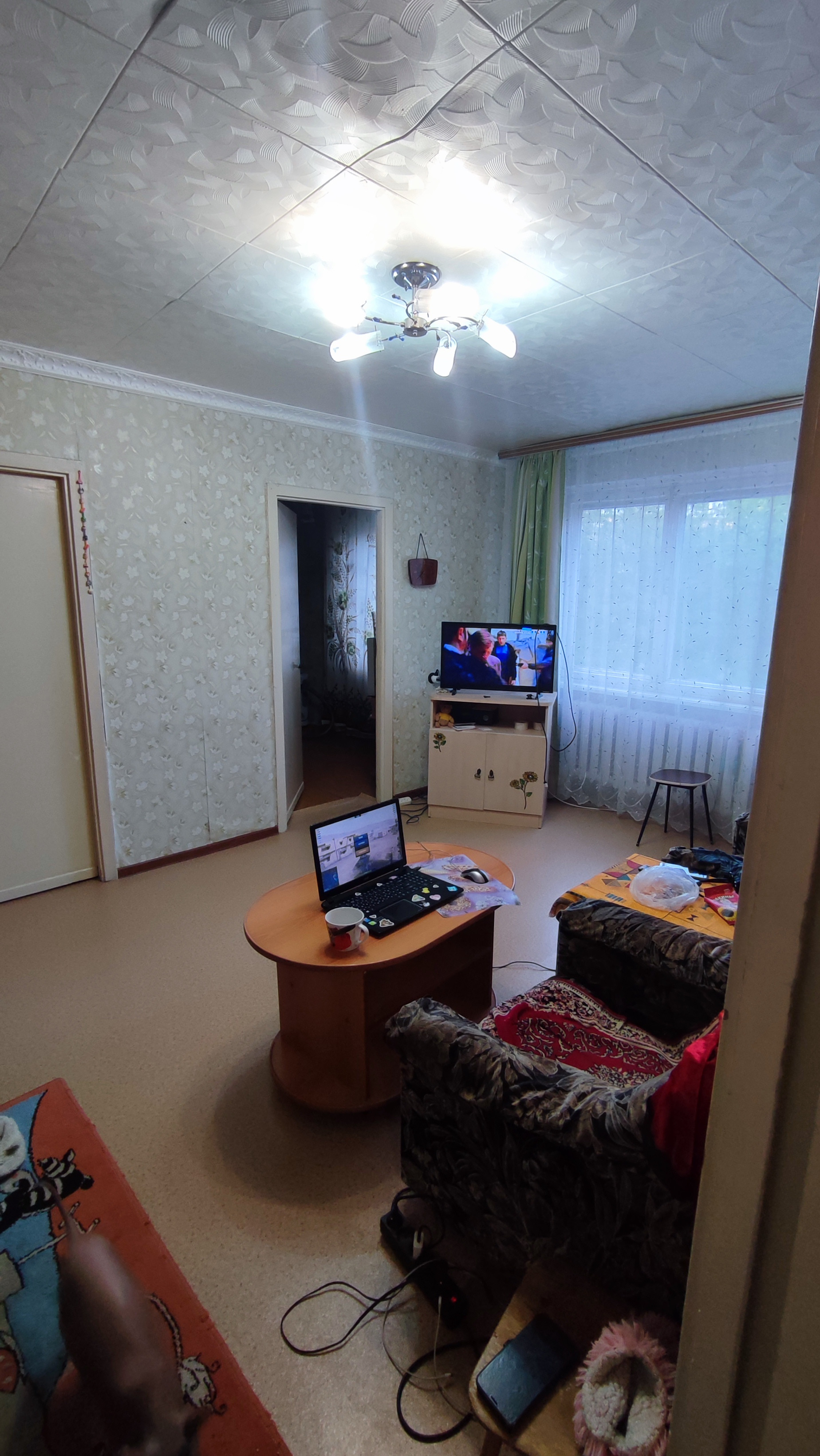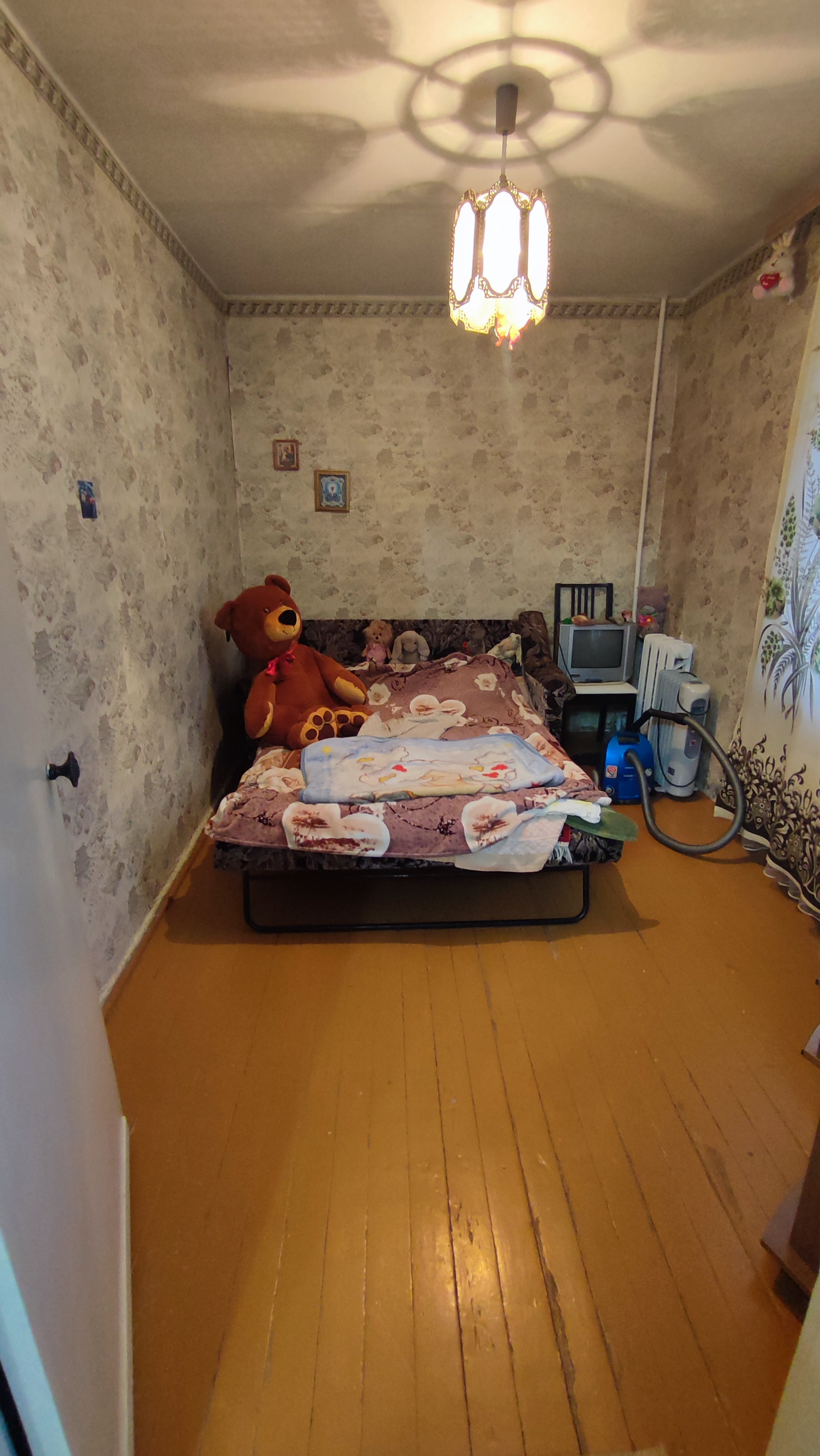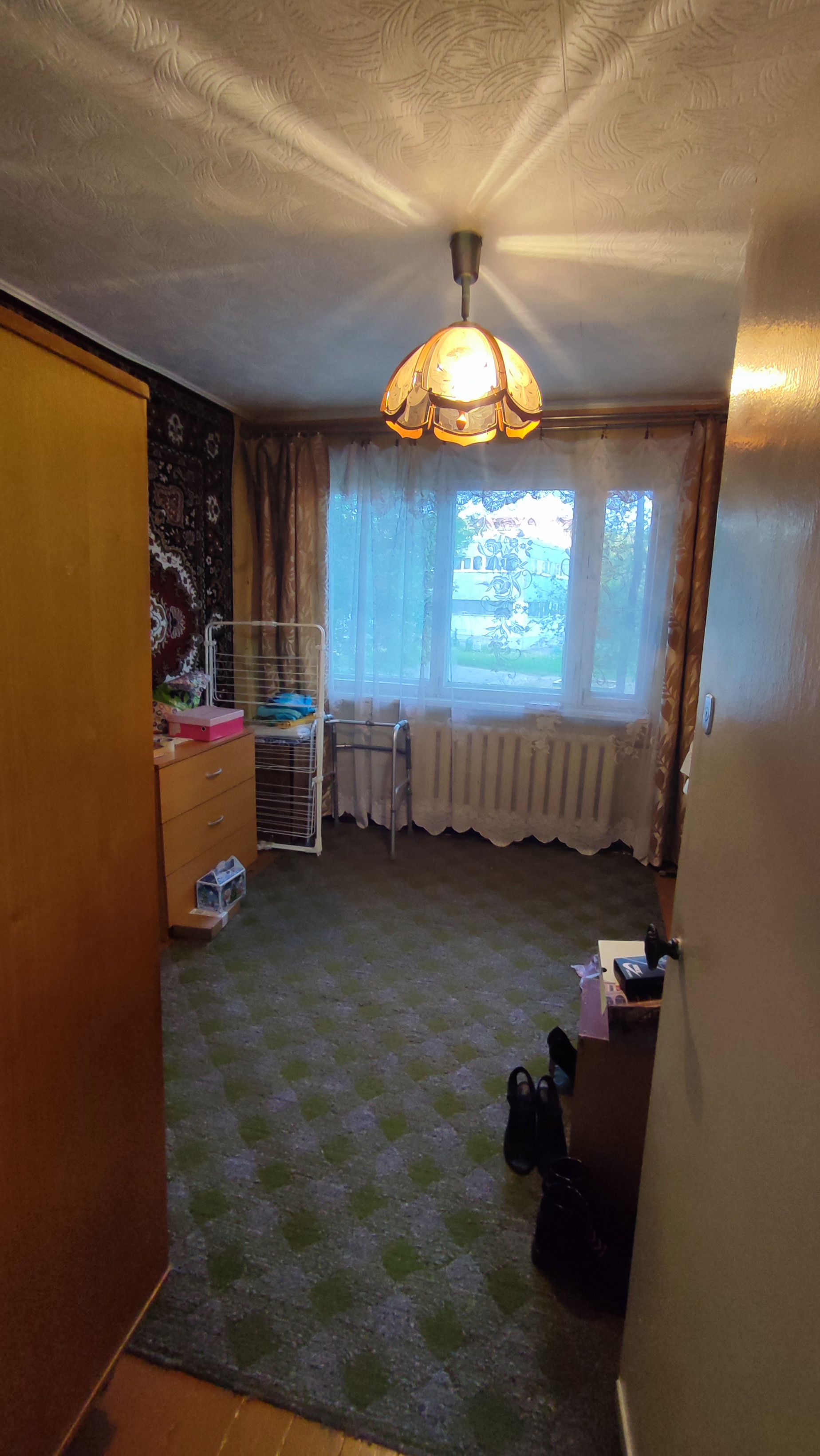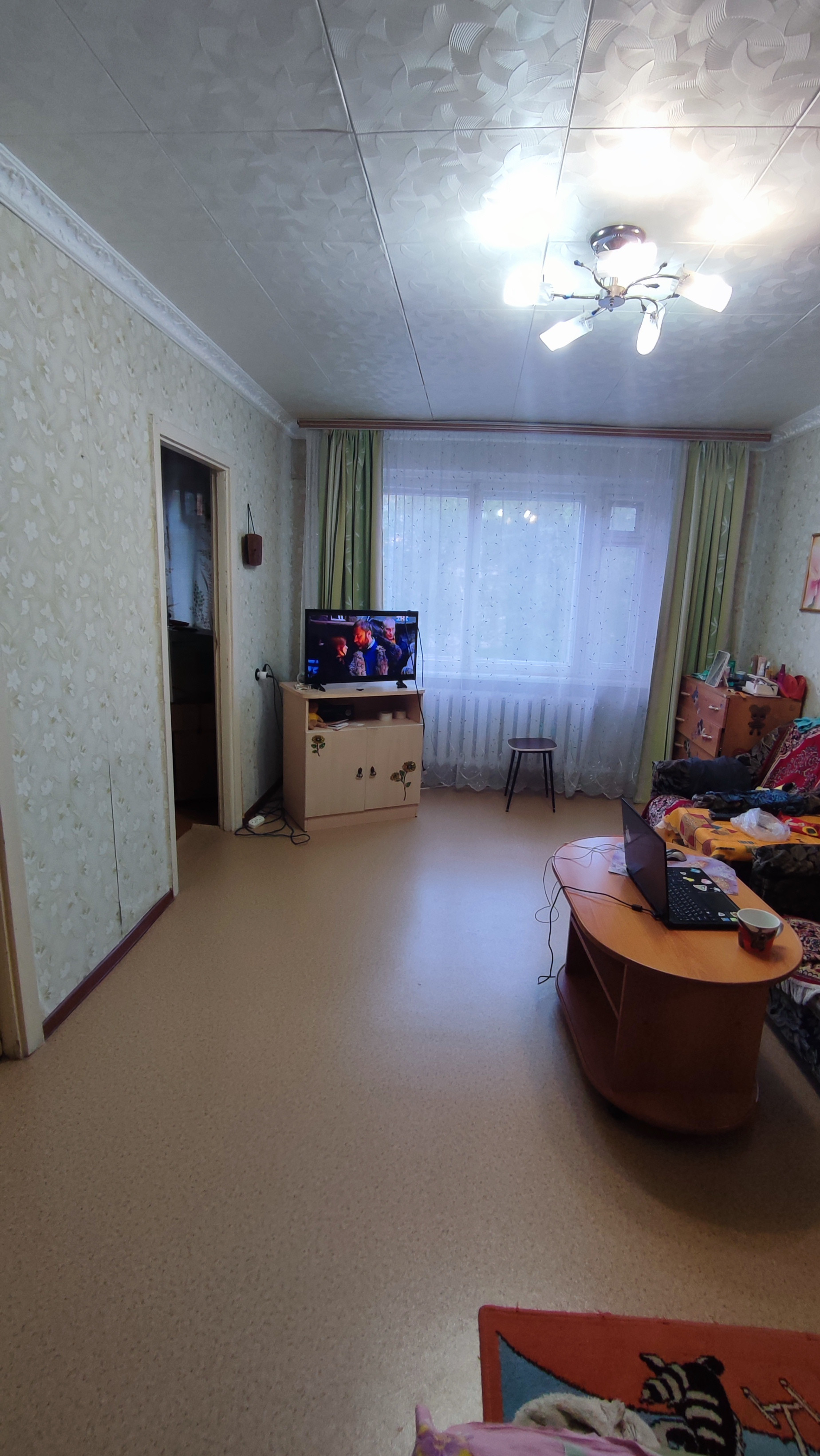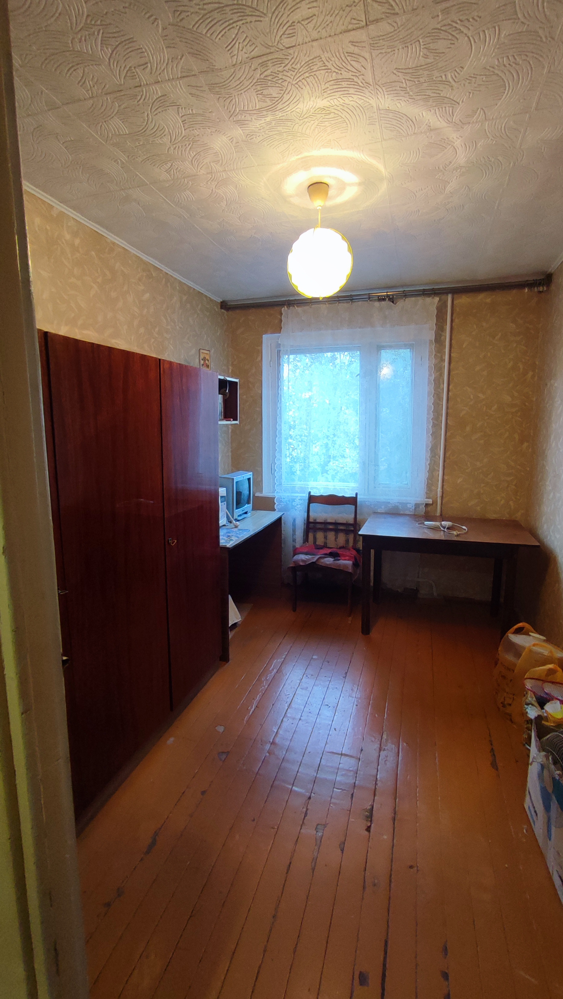 Продается квартира "брежневской" планировки по адресу: Проспект Победы 35а. Состояние обычное, жилое,установлено 1 пластиковое окно в кухне, разводка труб в санузле полипропилен, установлены счетчики на воду. Полы деревянные (не скрипят), линолеум. Квартира угловая, но очень теплая, этаж высокий (на уровне 2 го этажа). Дом находится во дворе, вдали от шума и пыли дорог (не проездной),