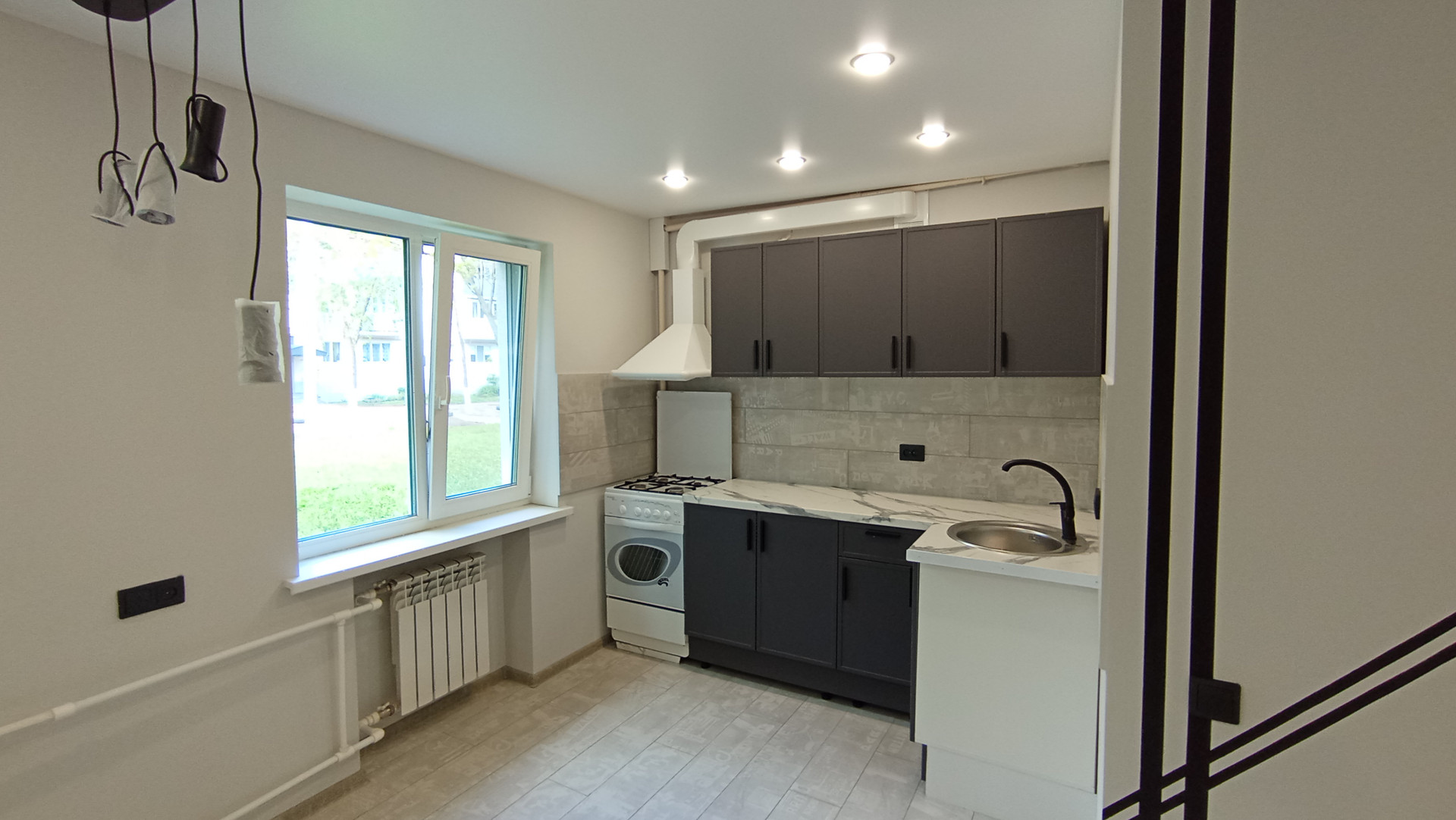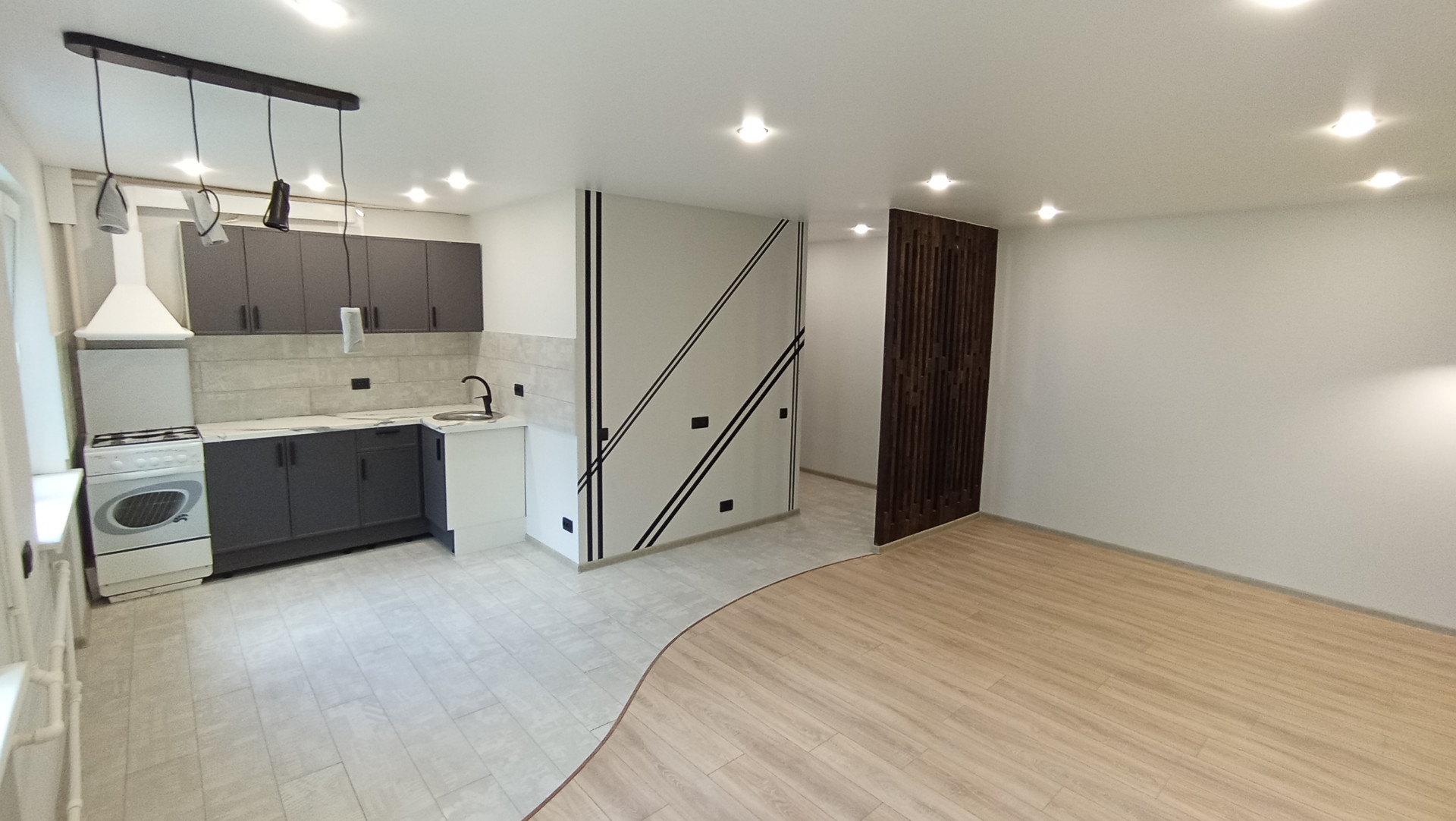 продается квартира с дизайнерским ремонтом. окна ПВХ, заменены все трубы,счетчики на воду, инсталляция+биде, с/плитка, новый полотенцесушитель, натяжные потолки, комнаты полы- ламинат, коридор, кухня- керамогранит, стены выровнены, стяжка, в спальной есть шкаф-купе, светильники. стоит новый электрический щиток. звоните , показ в удобное для вас время. услуги агентства платные 2%