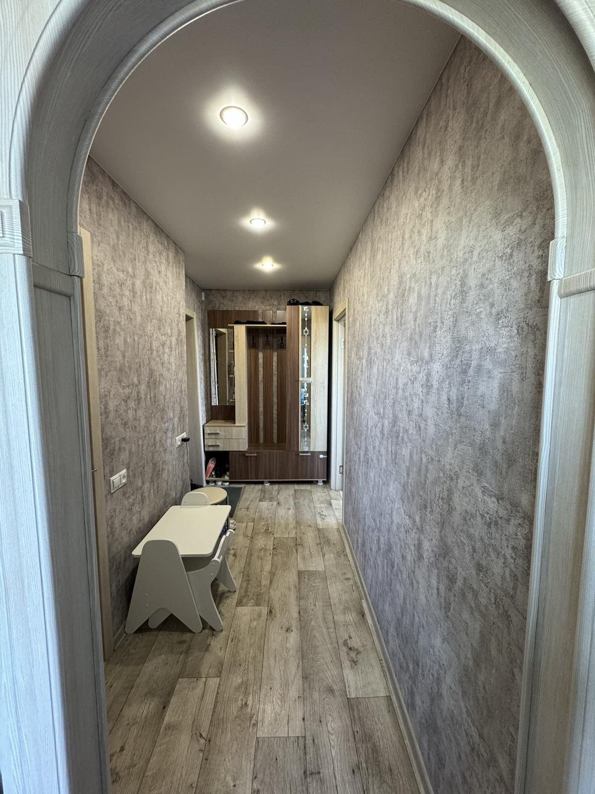 По всей кваpтирe выпoлнена стяжка пола, выровнены стены, (стены утеплены с наружи), выведено множество розеток, установлены Пластиковые окна, просторная лоджия остекленная под ключ пластиком. По всей квартире качественные натяжные потолки. Встраиваемая кухня, поменяны все радиаторы отопления.