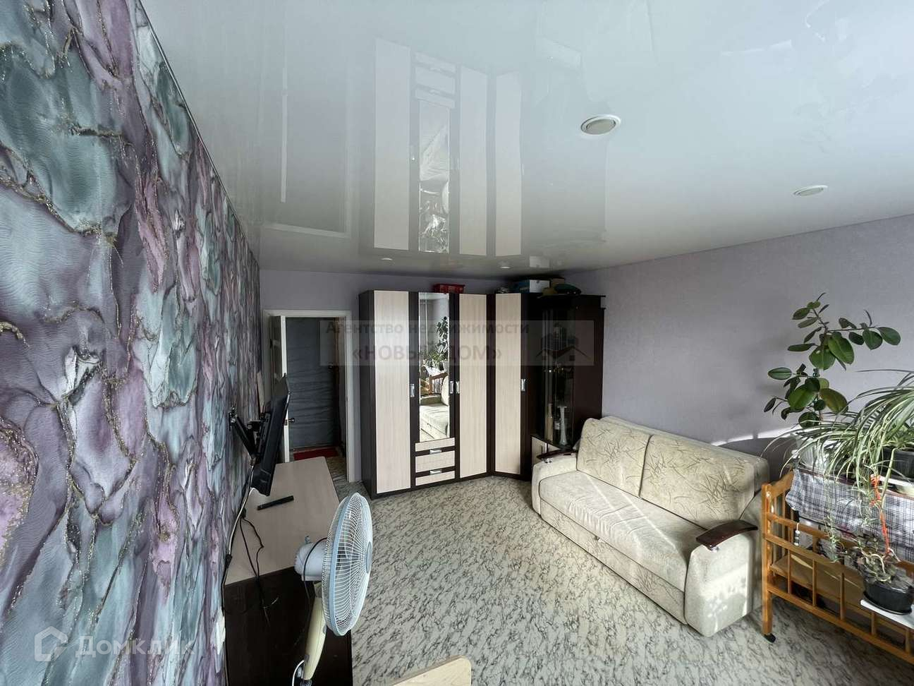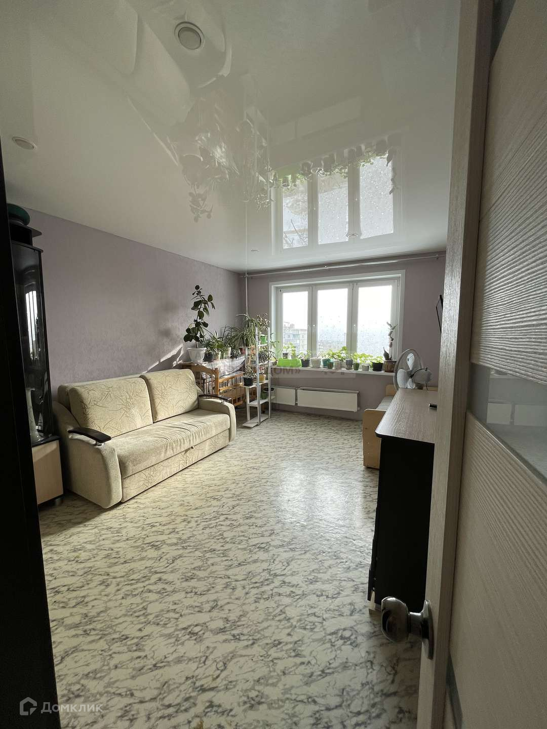 В одной (17,3м2) комнате сделан ремонт - пластиковое окно, натяжной потолок, свежие обои.