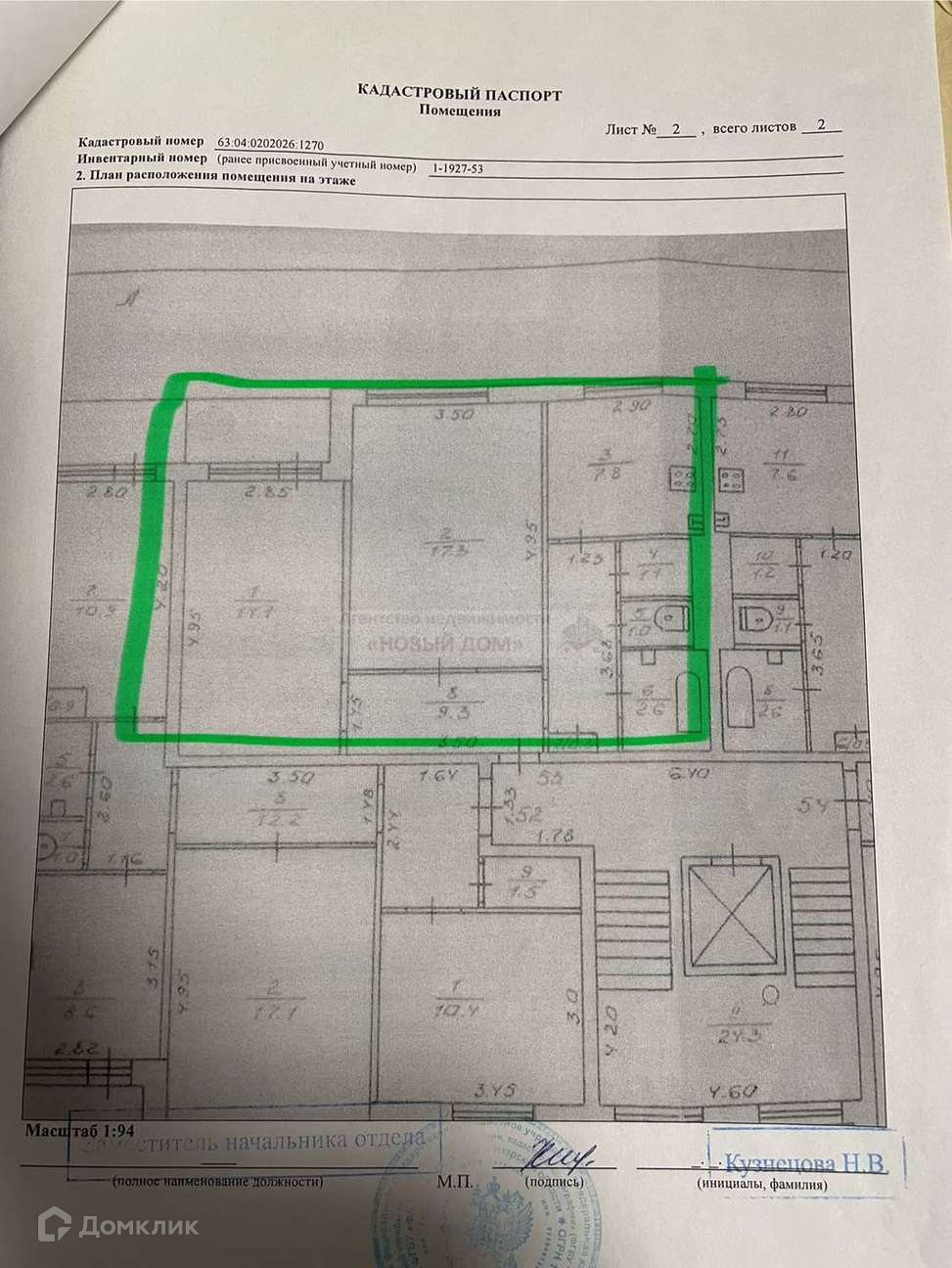 2-комнатная квартира, 53.5 м2, этаж 8 / 9, на продажу в Новокуйбышевске, улица Дзержинского, 47