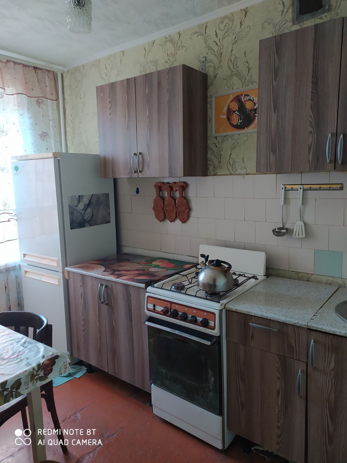 Без ремонта, стиральной машины нет. Диван, холодильник, кухонный гарнитур, микроволновка.