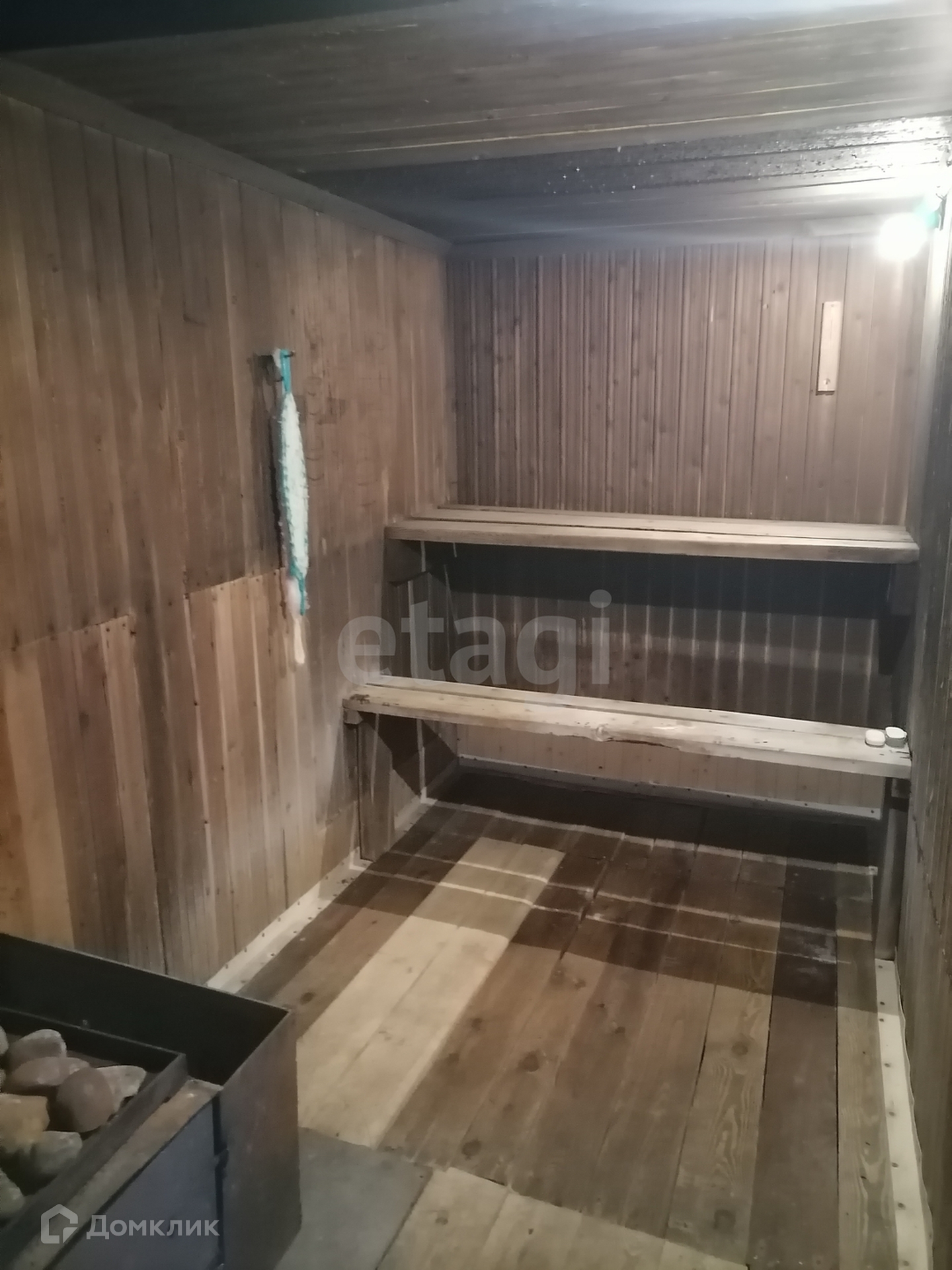 В доме две комнаты, кухня и веранда. Выполнен легкий косметический ремонт, натяжные потолки, на полу линолеум. Печное отопление с разводкой труб по всему дому. Централизованная холодная вода. Слив в доме. Два погреба - один в бане, другой в отапливаемом гараже. В погребах датчики температуры с выводом дисплея. Также есть баня, в которую можно пройти из дома по балкону, две теплицы из поликарбоната, беседка, столярка, углярка, емкость под воду для полива, колодец.