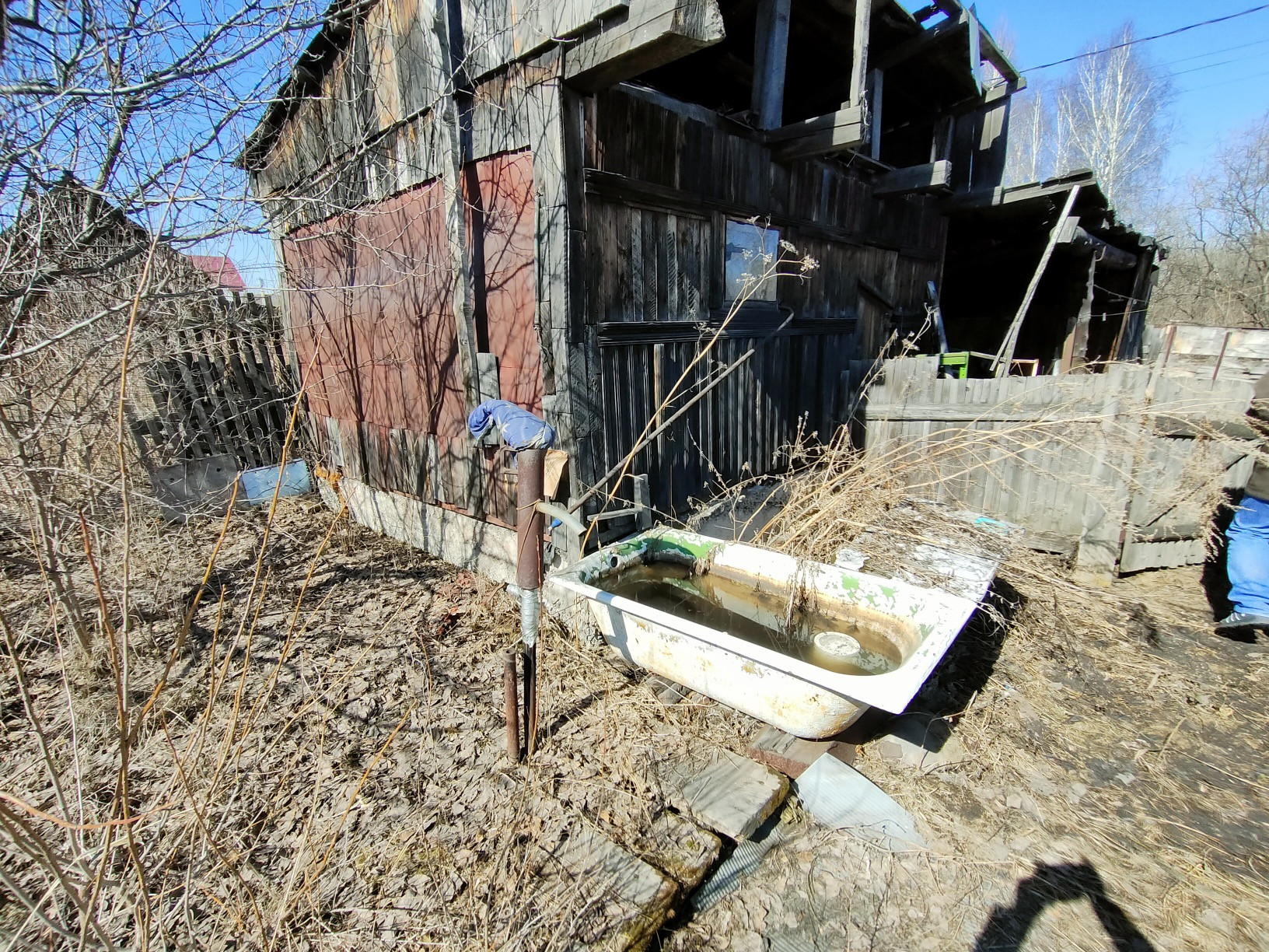 Отопление печное, колонка с водой в огороде.