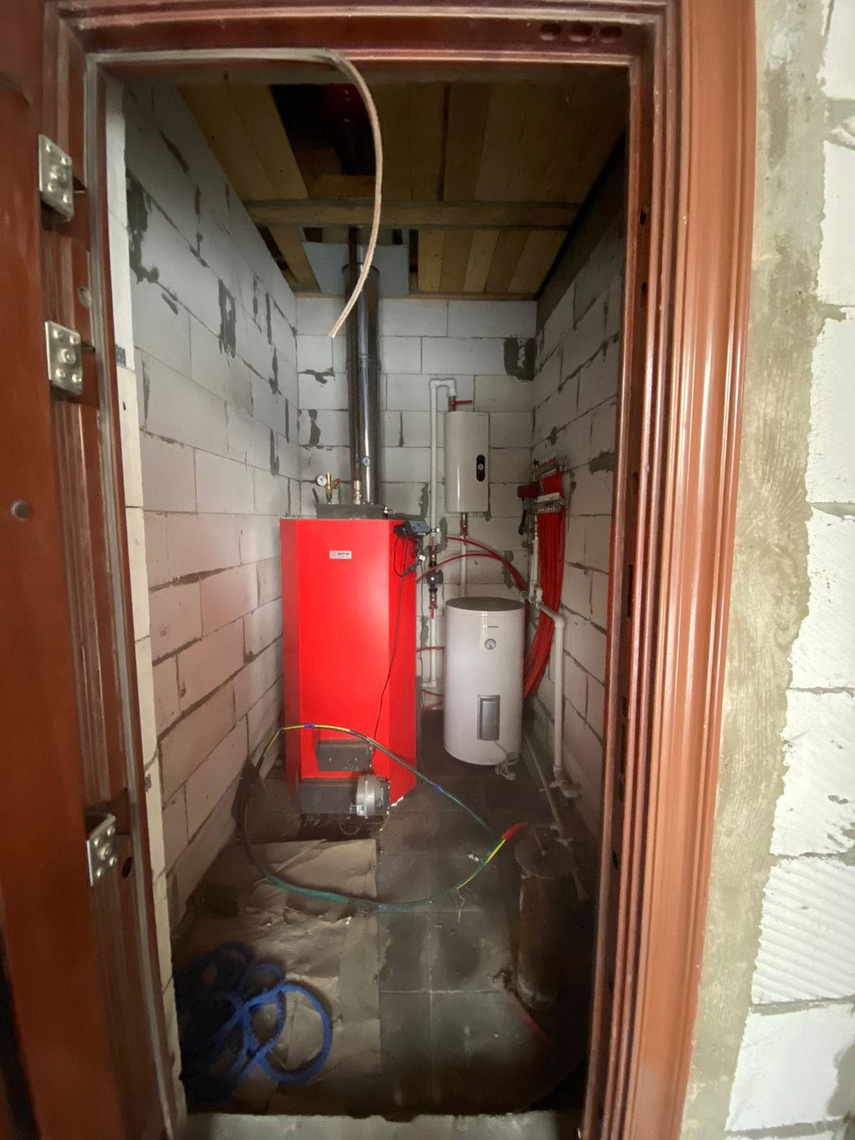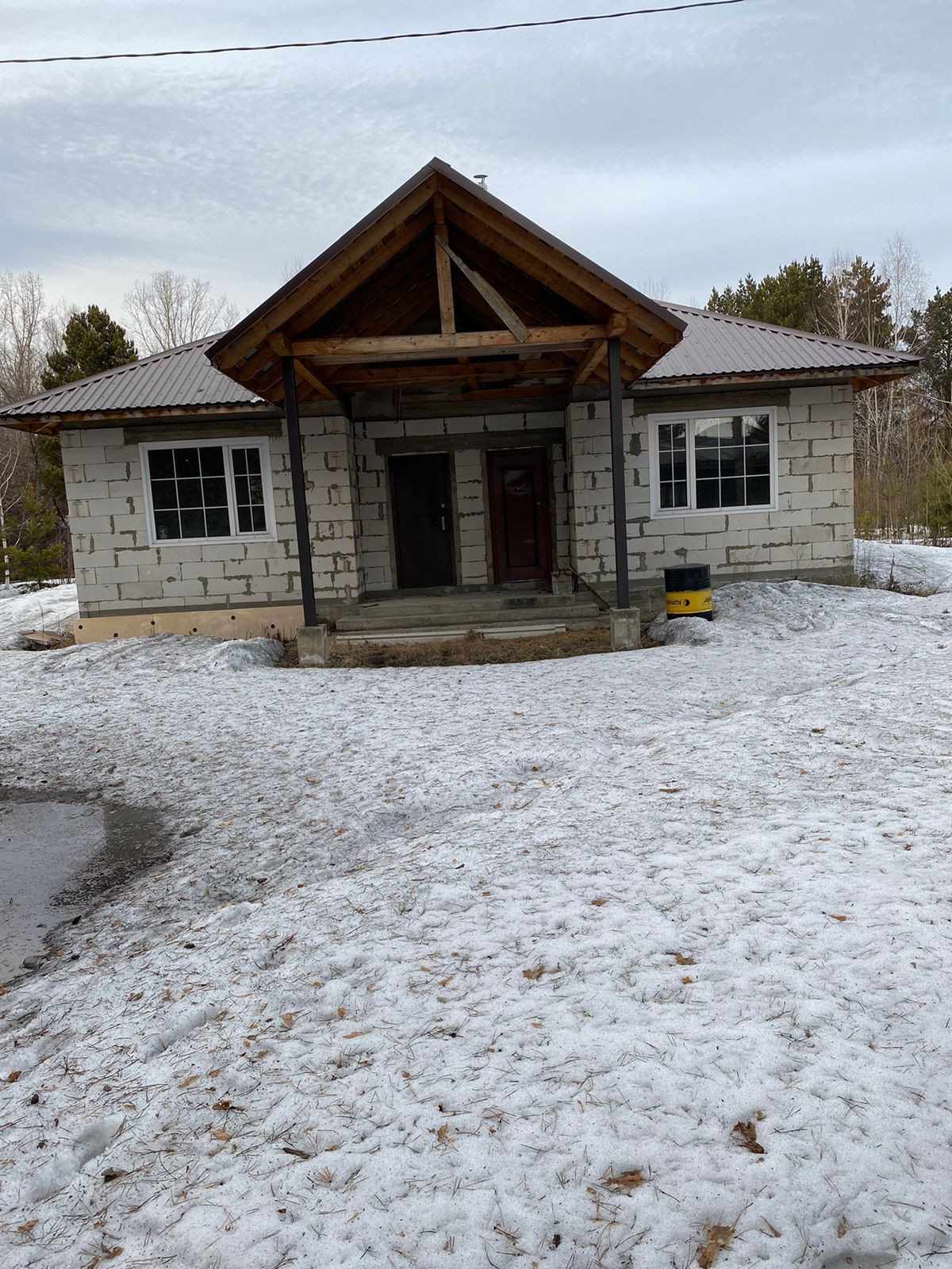 Дом не достроен, нужна внутренняя отделка. Имеется котел для отопления, бойлер для нагрева воды. Пробурена скважина, выкопана большая выгребная яма.