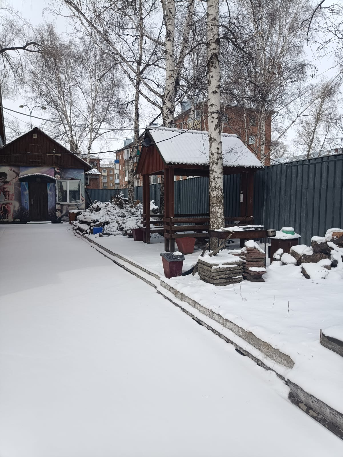 Дополнительные строения 3 шт. 1 этажные не на фундаменте (отапливаемые, с электричеством и одно из них с водоснабжением и канализацией). На территории присутствует зона отдыха (беседка с мангалом) и стоянка для 10 автомобилей. По всей территории освещение и видеонаблюдение.
