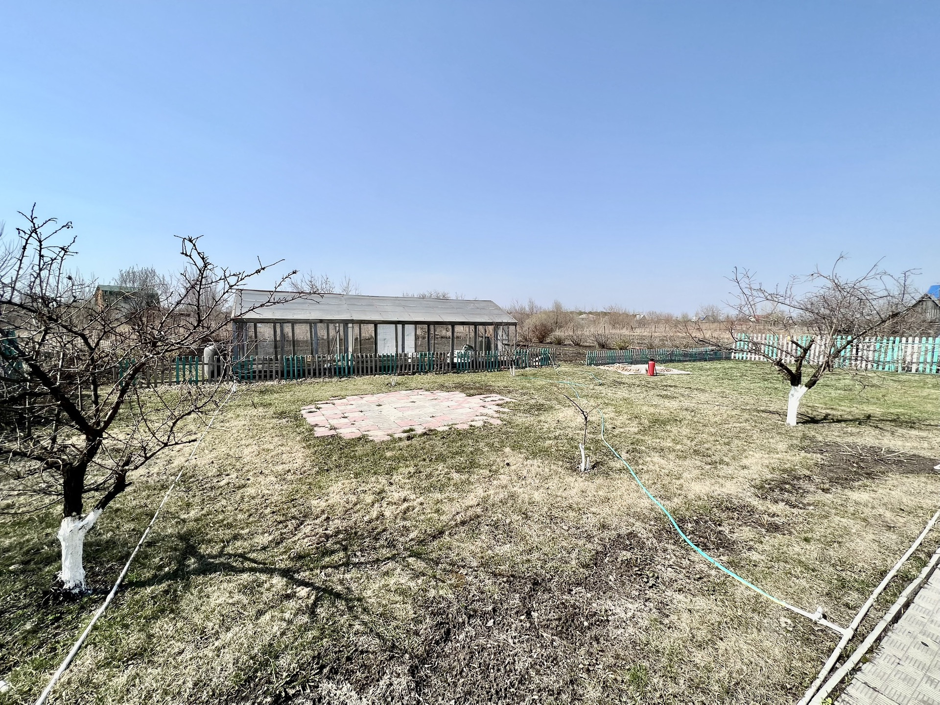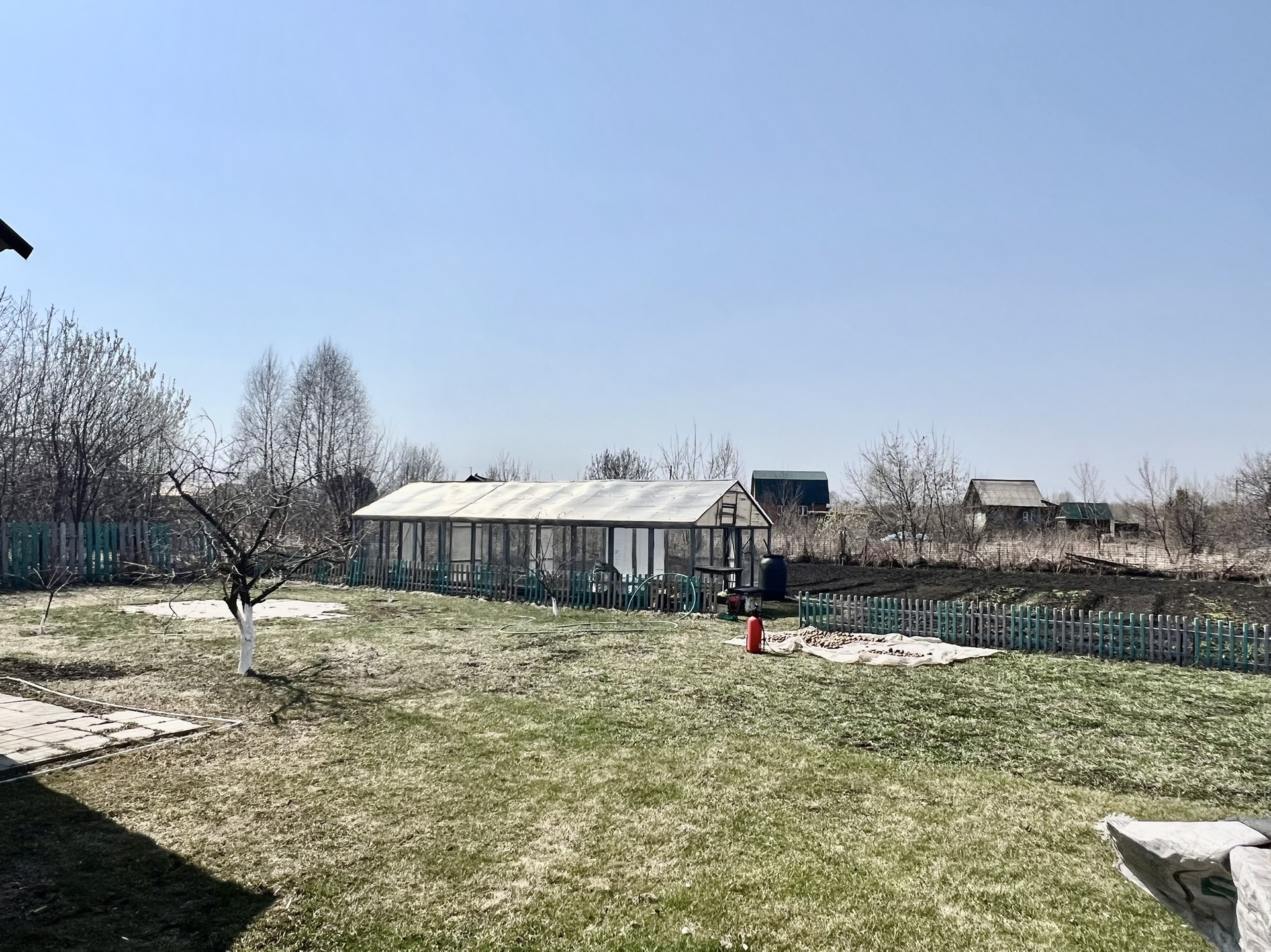 На участке перед домом разбит цветник и оборудовано мини-озеро. На участке за домом газон и оборудована теплица.