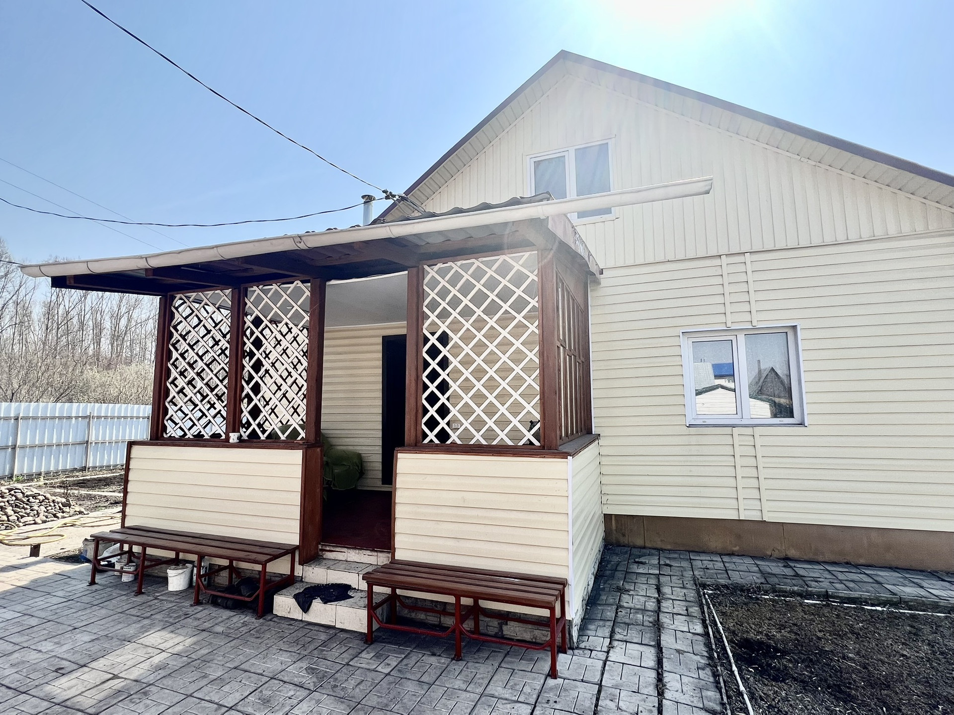 Подъезд к дому круглогодичный, дорожки к дому при входе выложены плиткой. Дом и земля в собственности, чистая продажа. Один взрослый собственник.