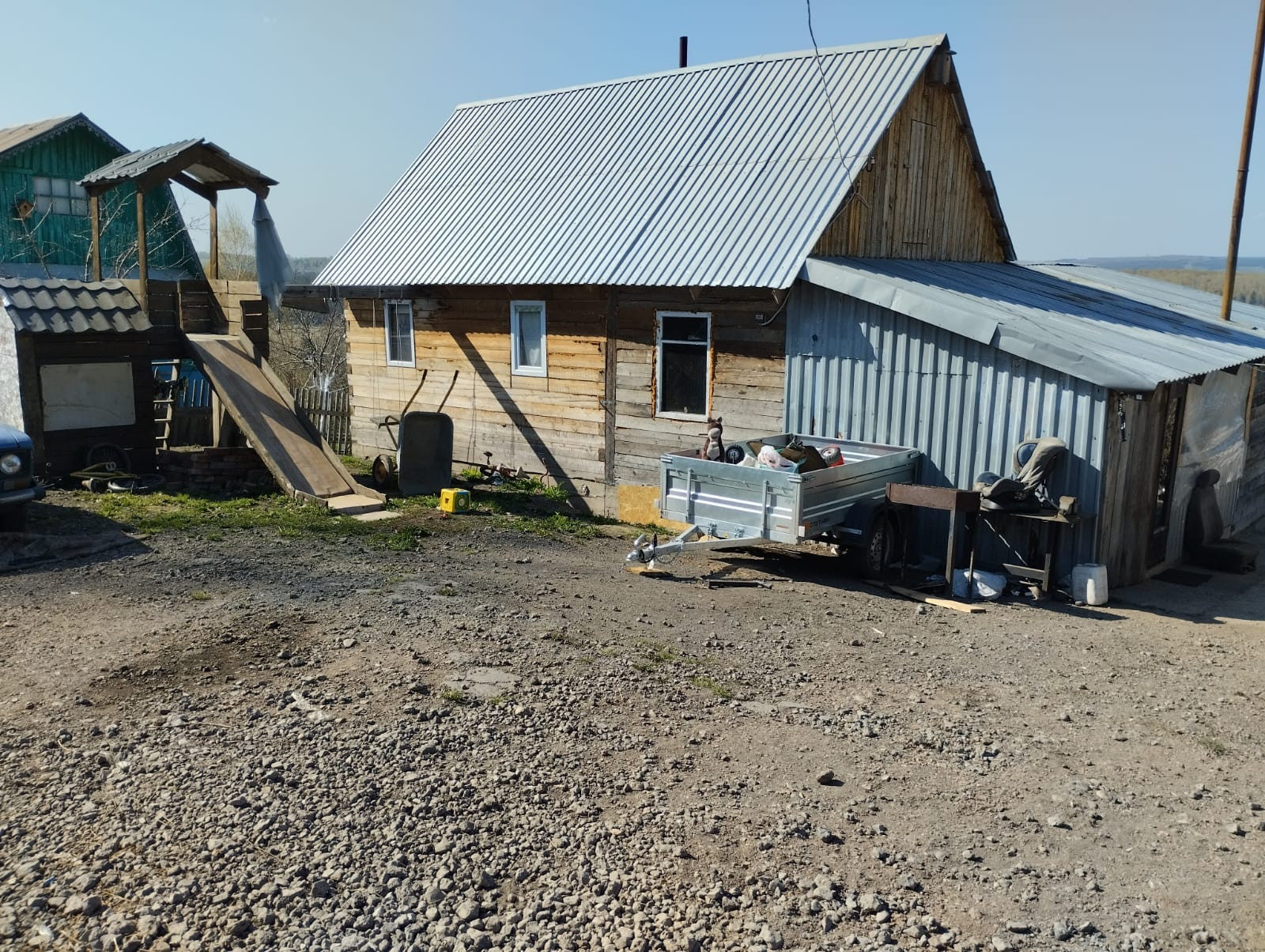 Дом из бруса -кухня и две комнаты.Баня ,веранда и хозблок под одной крышей.В доме печное отопление,можно жить круглый год. Удобная локация, 10 минут от города, направление Верхнее-Редаково, Пушкино.Центральная улица, автобусная остановка совсем рядом.  Пробурена скважина 80 метров,на двоих с соседями.Детская площадка .Забор из профлиста.Огород удобрен,сажаю каждый год.