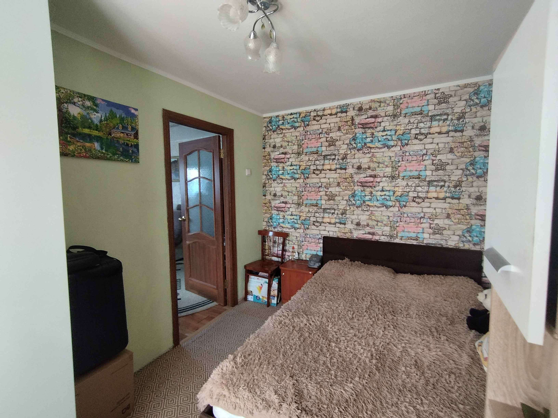 В подарок остаётся кухонный гарнитур с встроенной техникой,большой шкаф - купе.