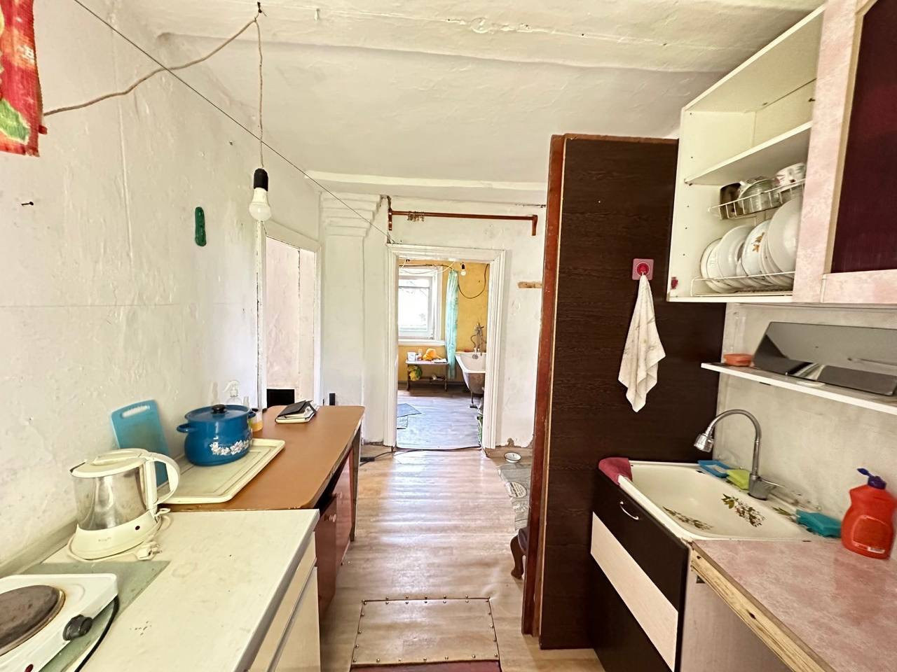 В доме 3 комнаты и кухня, общая площадь 35,1 кв. м. Окна ПВХ. Печное отопление, в кухне под полом бетонированный погреб.. В доме вода, слив, при желании можно установить санузел. Установлена ванна, имеется водонагреватель. Туалет на улице.