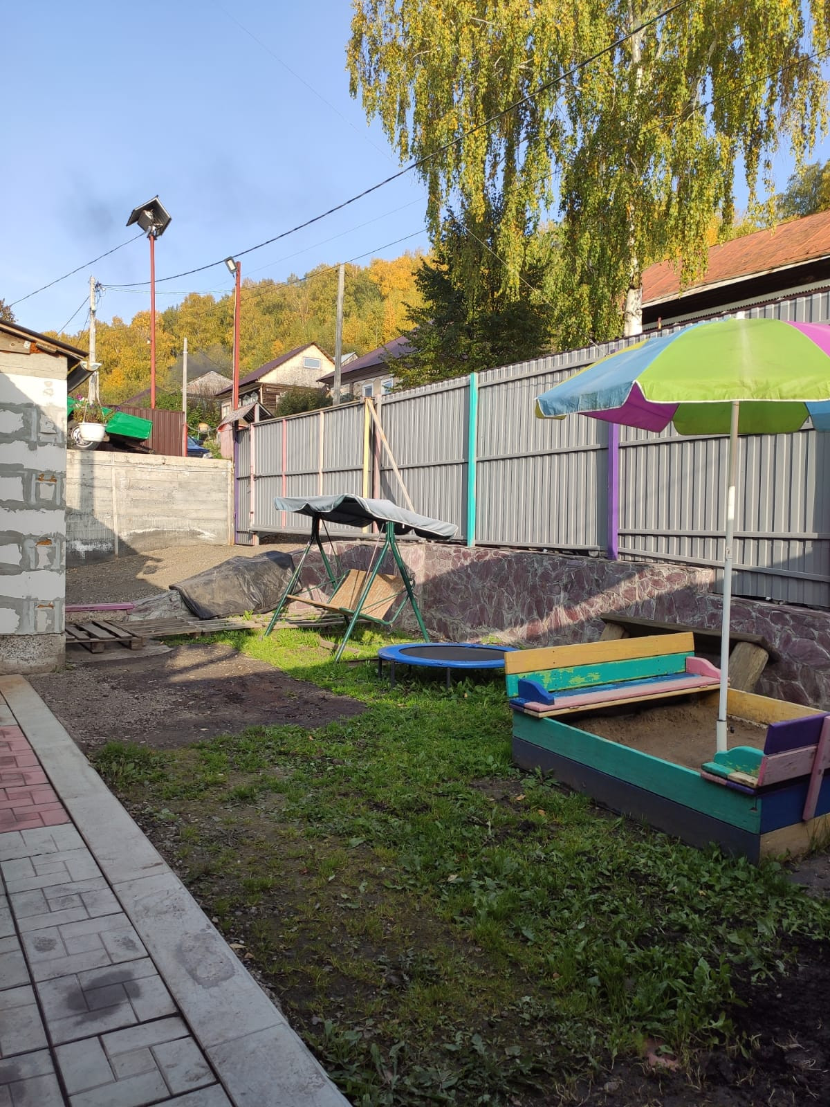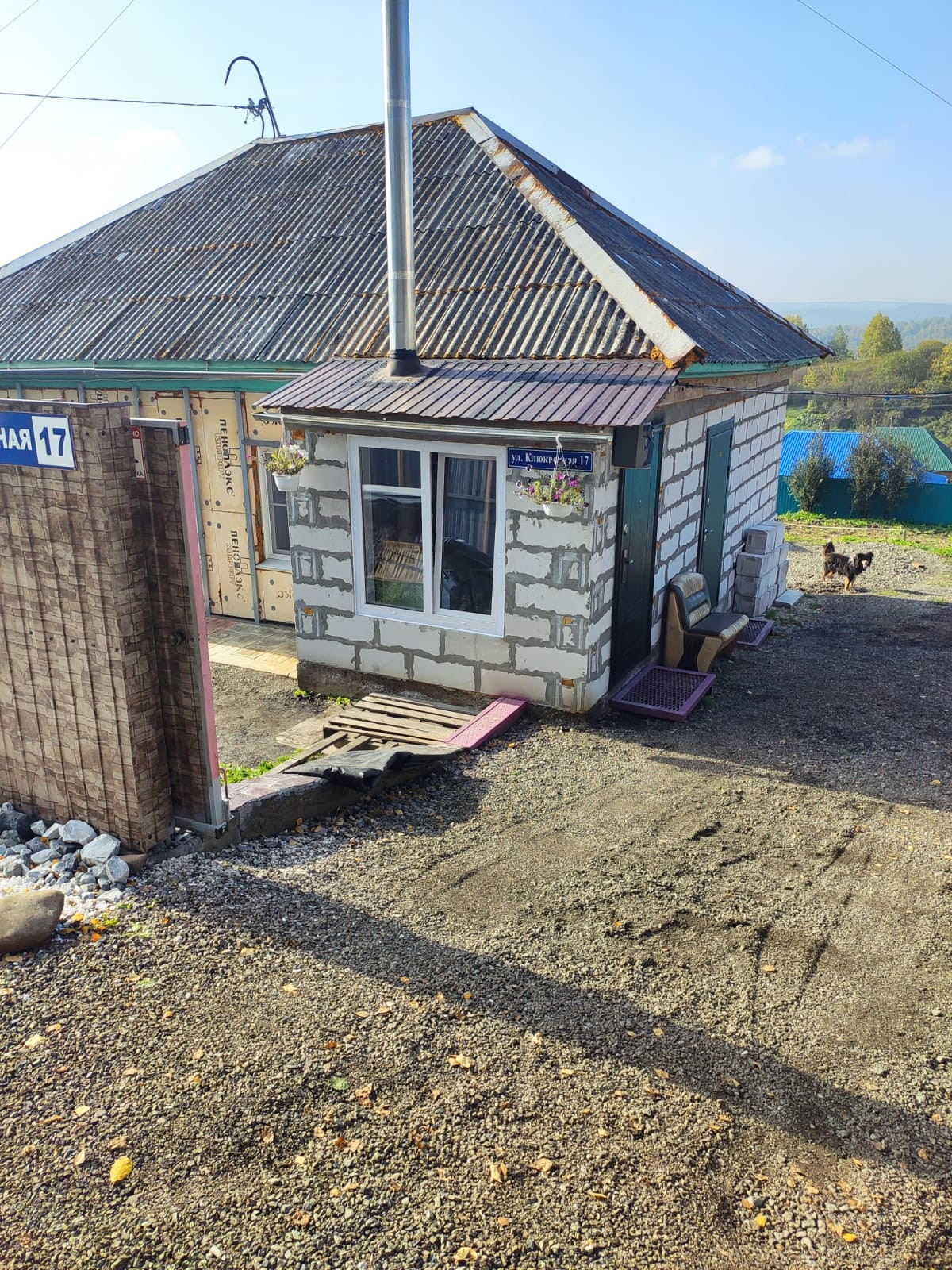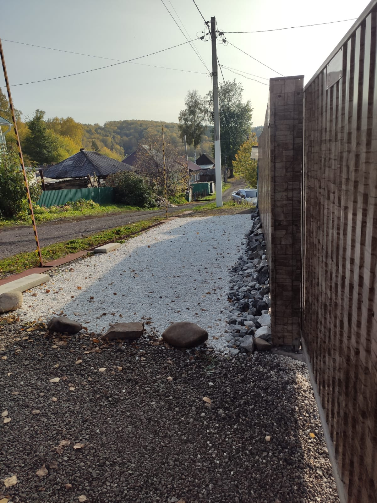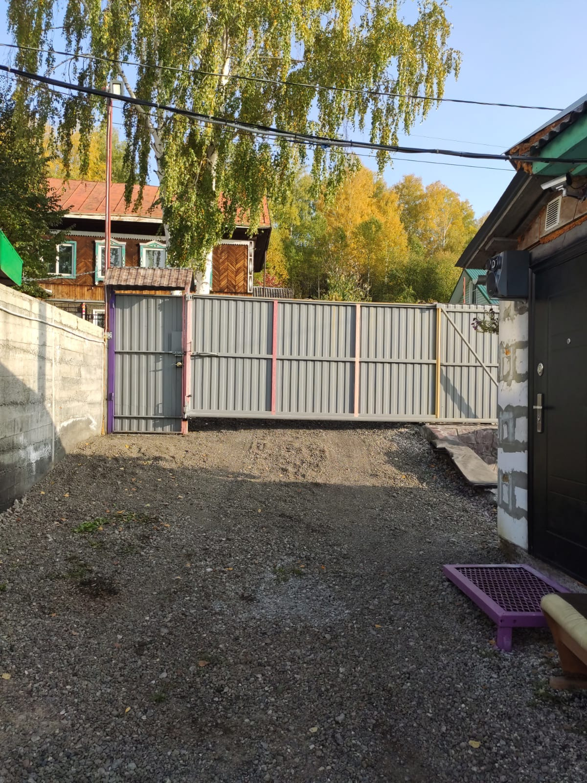 Парковка под машину с заездом во двор. Расположение дома находится на возвышенности при въезде в поселок тем самым   дает отличный вид на посёлок.