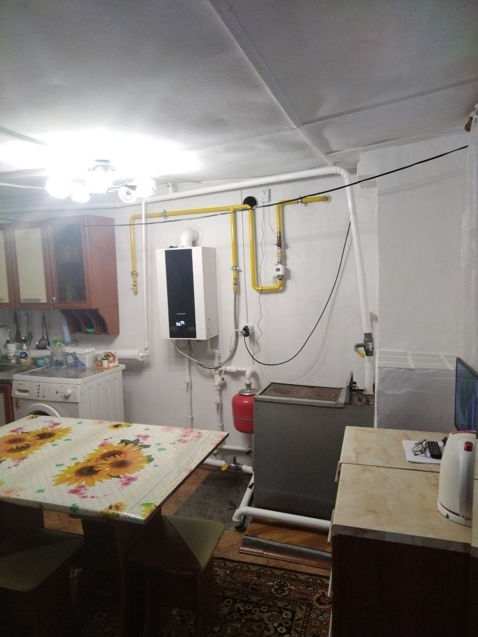 - Есть котёл(можно использовать как печное, так и газовое отопление);