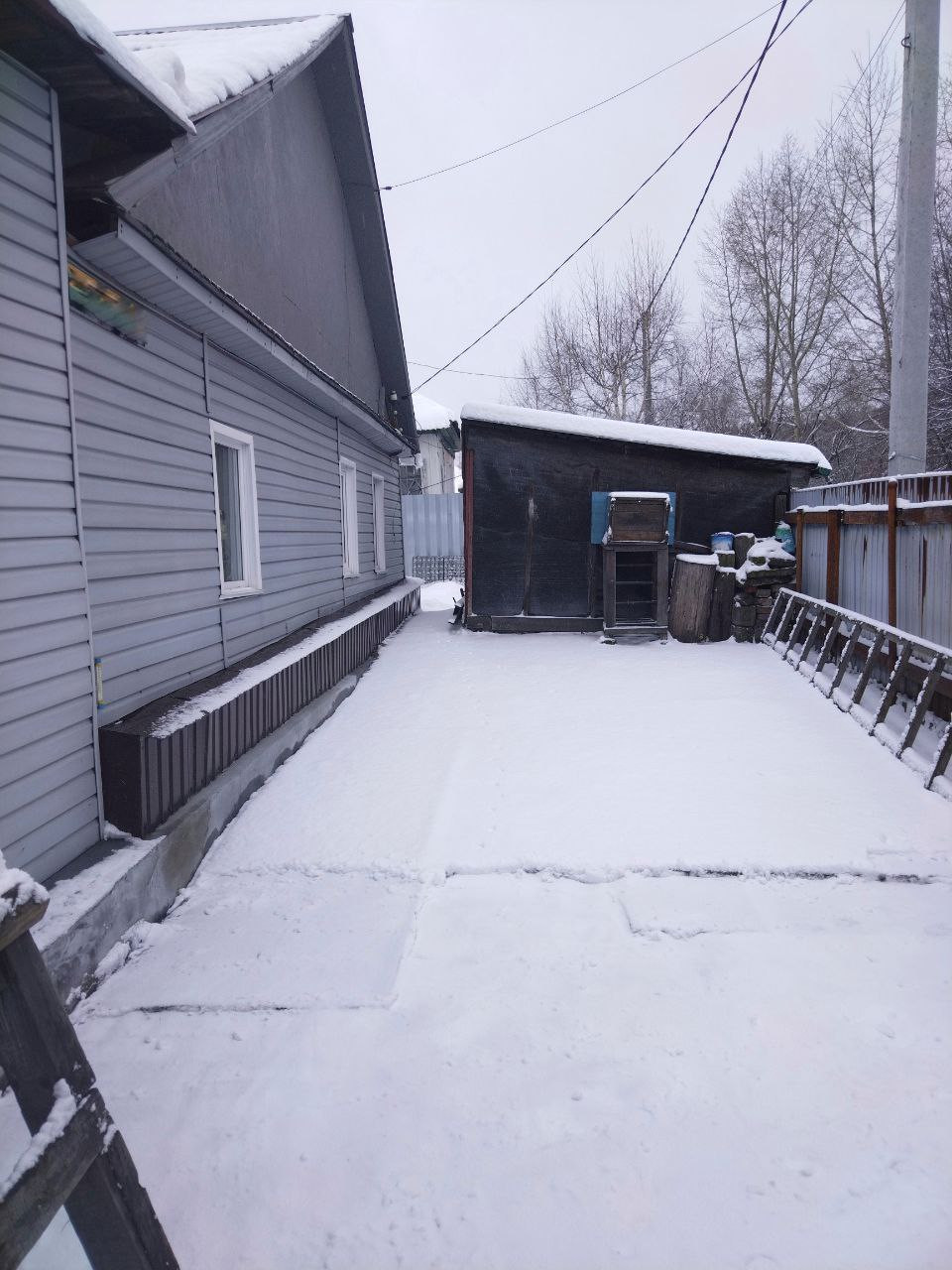 - Придомовая территория полностью зацементирована, есть место для машины;
