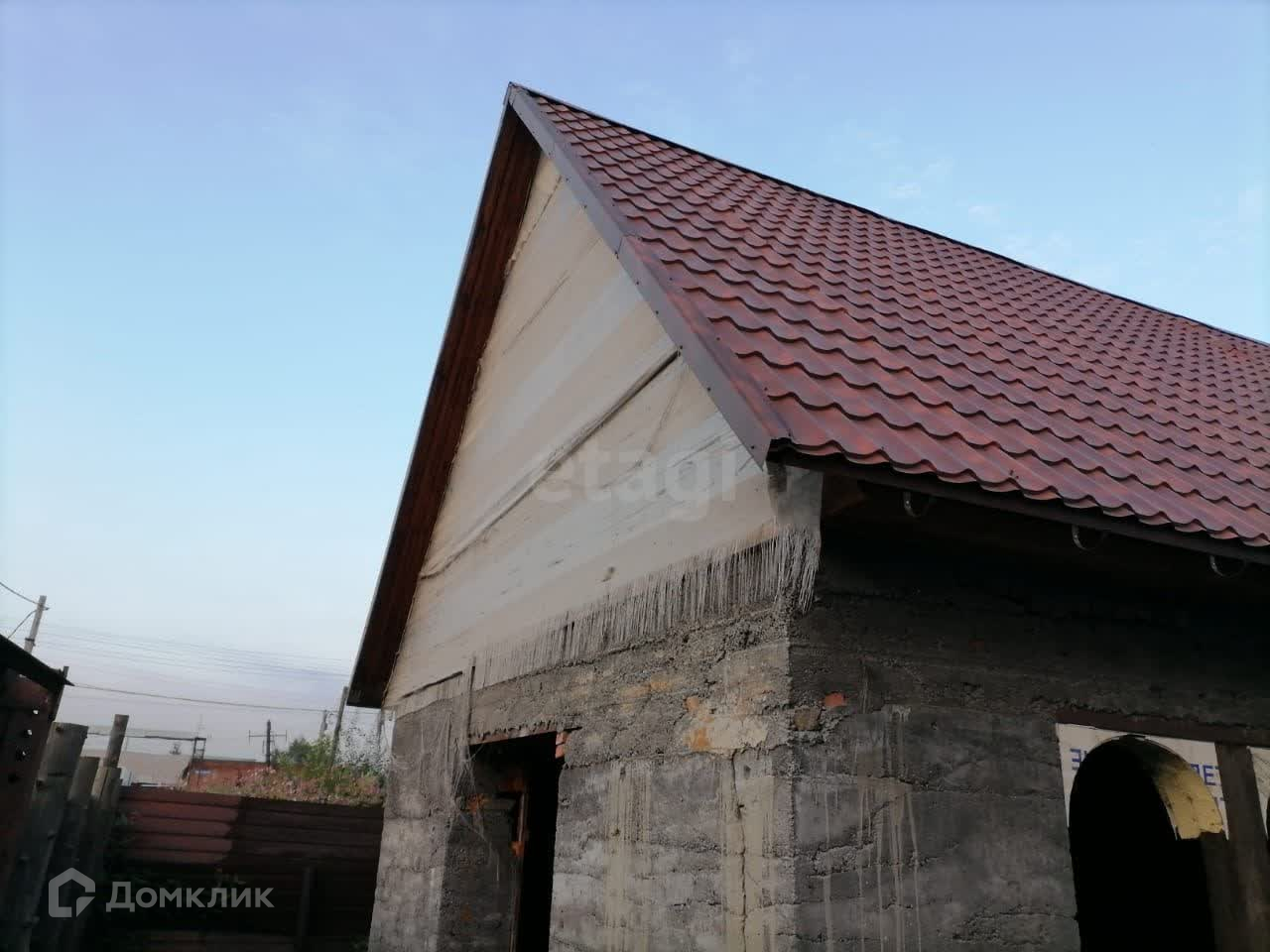 Крыша покрыта металлочерепицей.