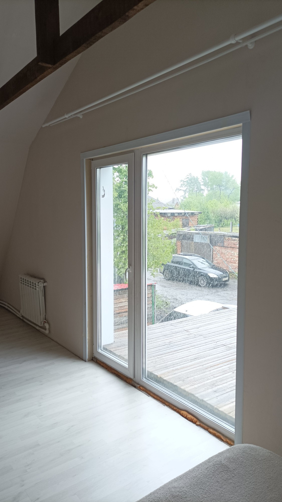 Второй этаж занимает три комнаты. С одной комнаты есть выход на недостроенный балкон ( терасса)