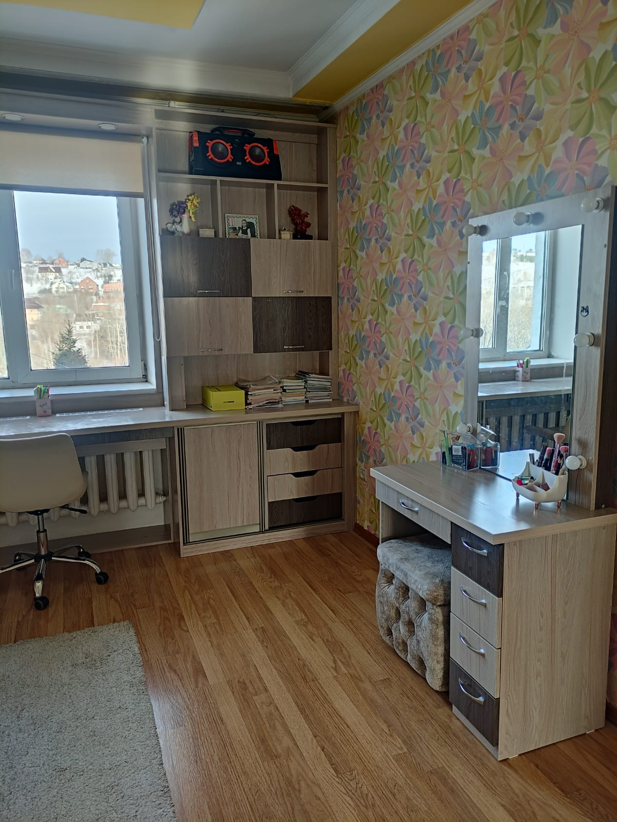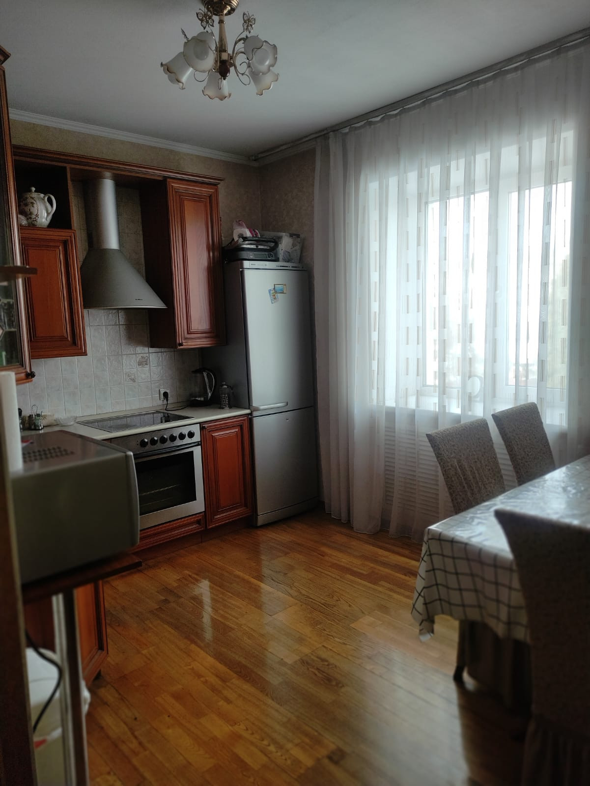 Продам или РАССМОТРИМ ОБМЕН!!! коттедж, недалеко от центра города, в живописном месте. На участке в 10 соток располагается двухэтажный дом 210 м². Участок ровный, по всему периметру пасту ели и туи. Две теплицы, курятник, яблони, груша, малина клубника. Отдельного внимание заслуживает беседка, где вы круглогодично можете жарить шашлык и готовить плов. В доме есть всё для комфортной и безопасной жизни. Дом очень тёплый, из кирпича, отапливается с помощью котла. Котёл твердотоплевный, одной загрузки хватает на 4-7 дней. Особое преимущество дома в том, что в нём может проживать две семьи (удобно будет жить с престарелыми родителями, они как бы с нами и отдельно от вас: отдельный вход, спальня, кухня, санузел) В доме на первом этаже просторная гостиная, кухня, санузел. На полу паркет, плитка, стены гипсокартон. На втором этаже три спальни, холл с камином, ванная комната. Пол ламинат и плитка, стены выровнены гипсокартоном. По всему периметру дома система кондиционирования. На цокольном этаже располагается душевая, комната отдыха, баня, котельная и прачечная. Вход в подвал из дома. На полу линолеум и ковролин . Гараж тёплый , отапливаемый, на два автомобиля. Имеется генератор, с автоматическим включением, на случай отключения электроэнергии. В шаговой доступности школа, магазины, остановка общественного транспорта
