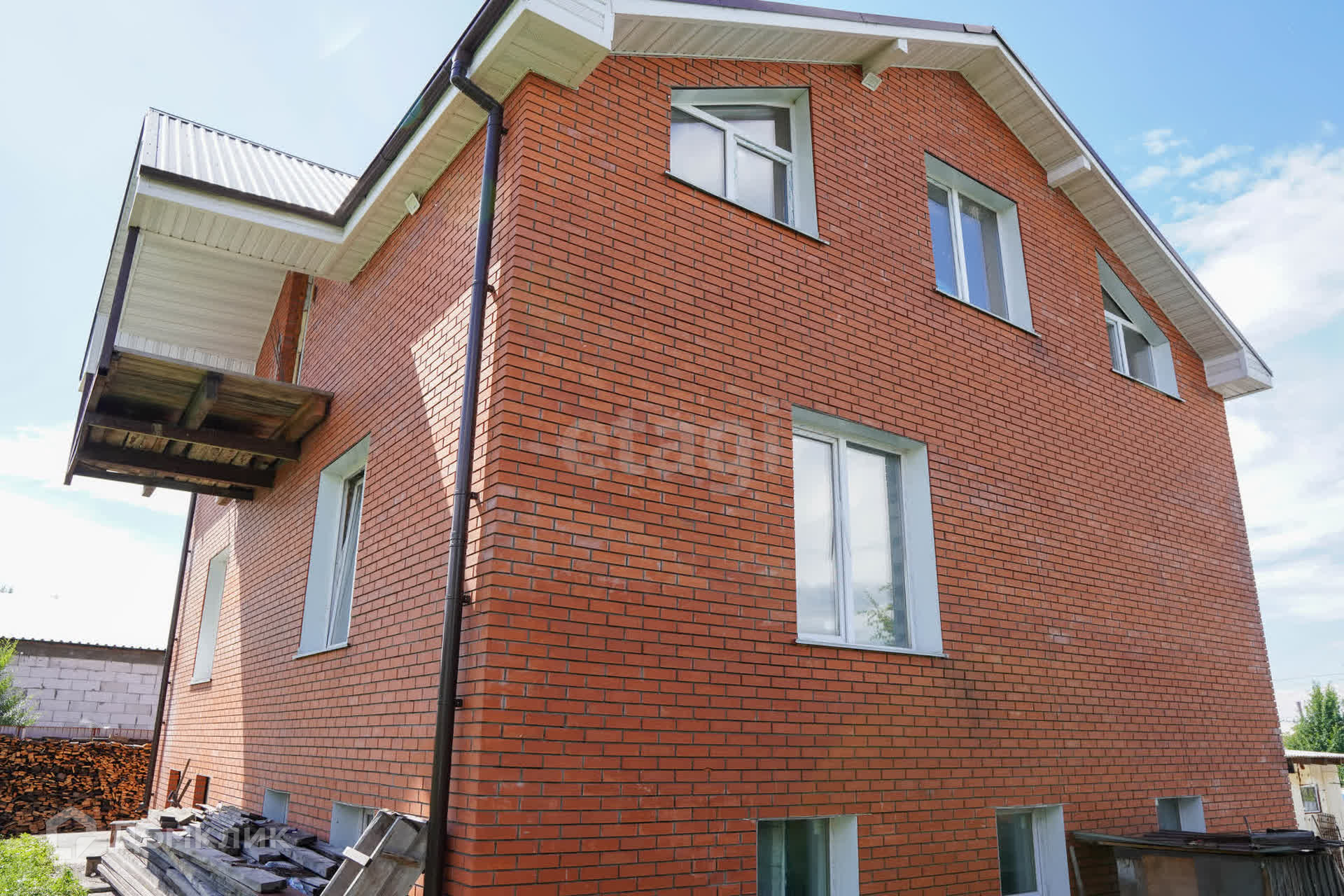 Дом обшит облицовочным кирпичом. Второй этаж имеет отдельный вход.