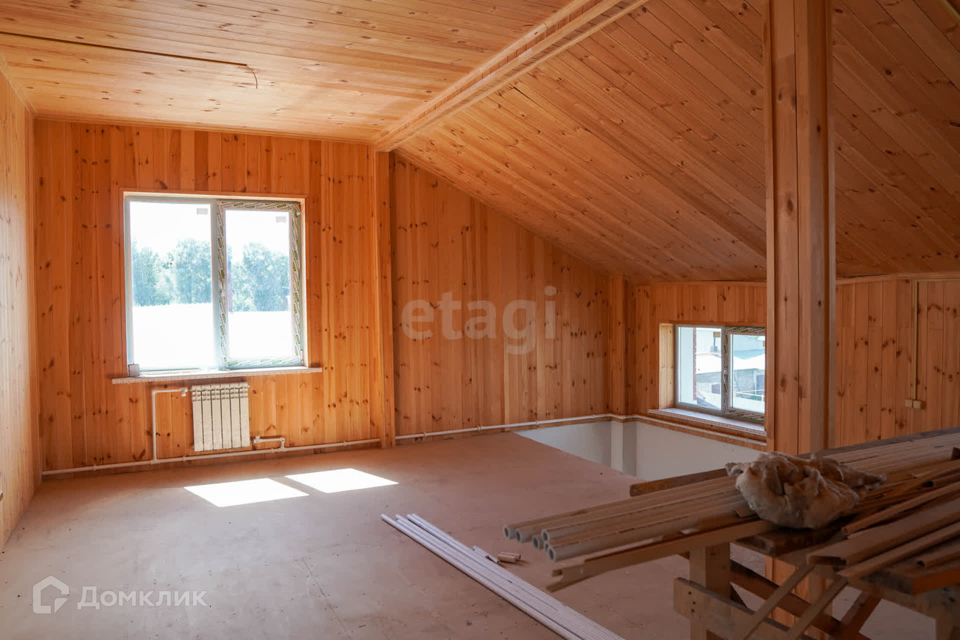Второй этаж полностью обшит евровагонкой.