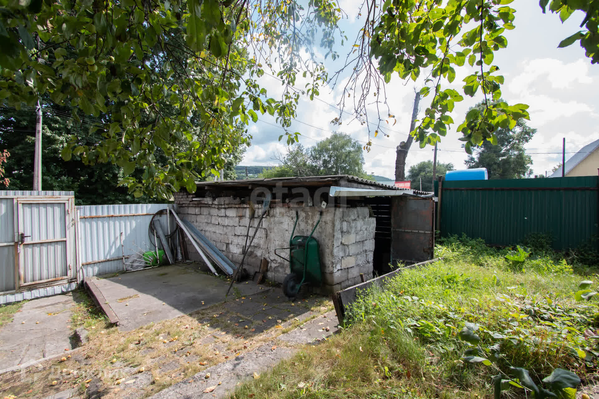 Первый этаж сделан из кирпича, второй из бруса. В доме установлены пластиковые окна. Во дворе гараж, беседка, санузел.