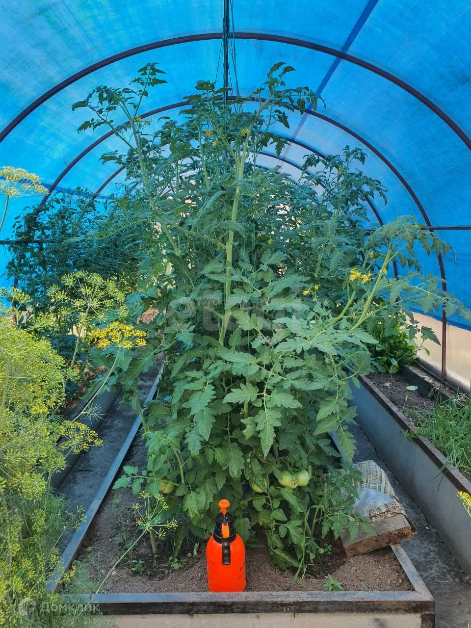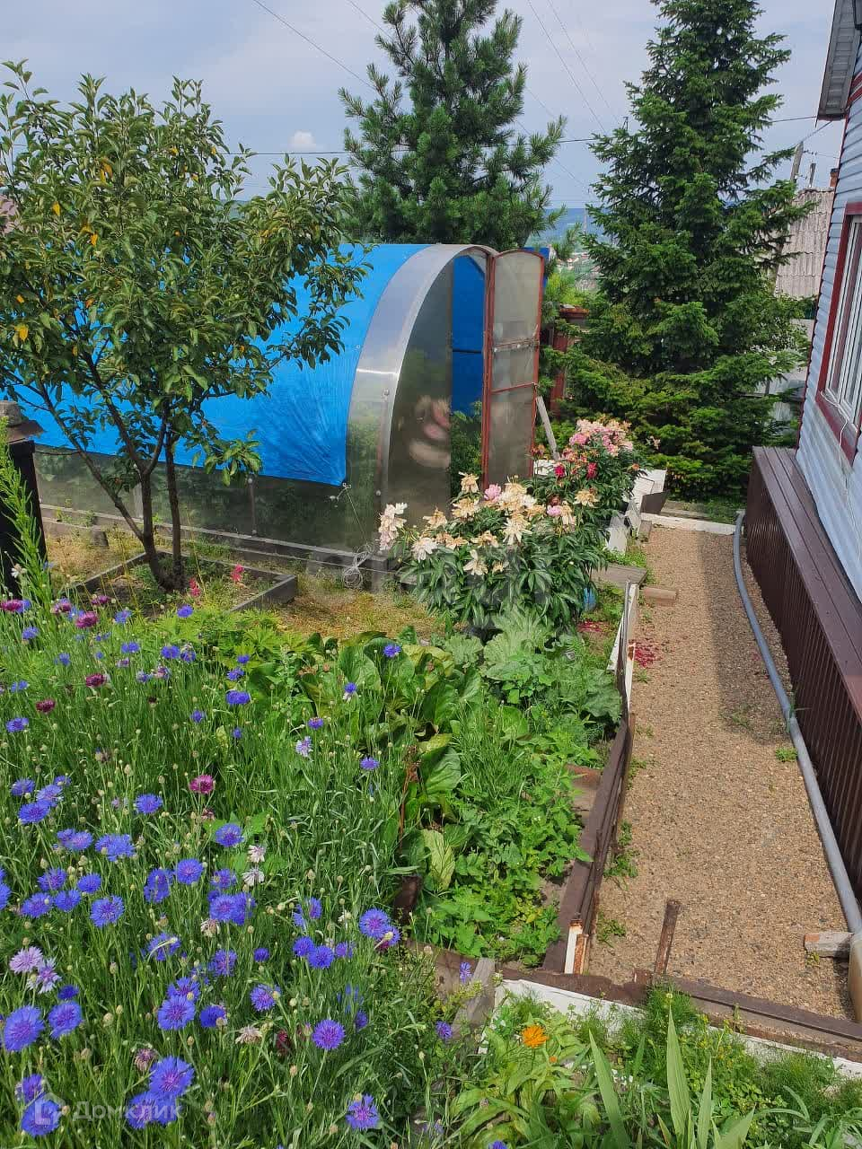Садовые насаждения: крыжовник 4 сорта, малина, жимолость, черноплодная рябина, вишня (6шт.), ирга(3 шт.), клубника и многое другое.