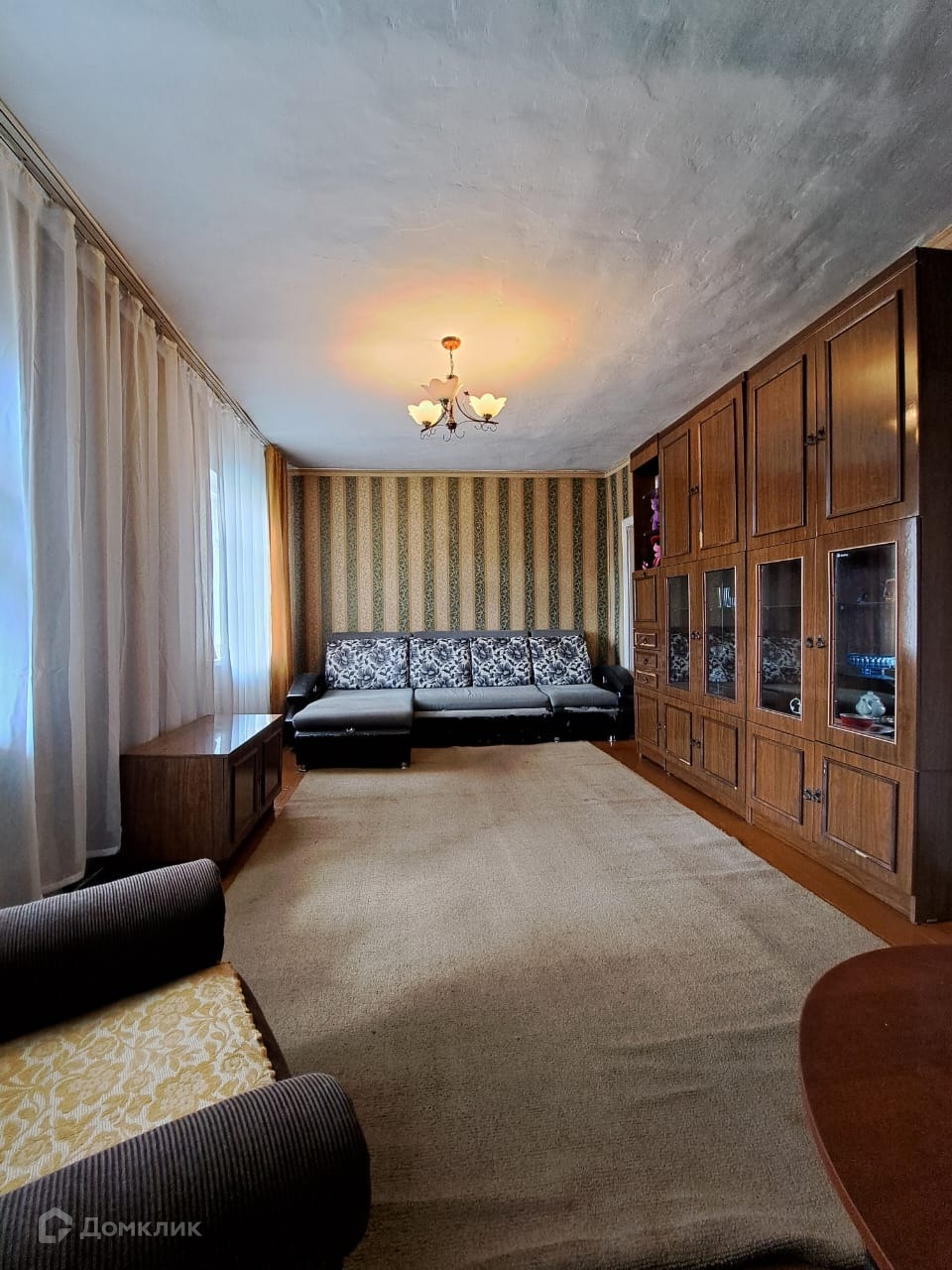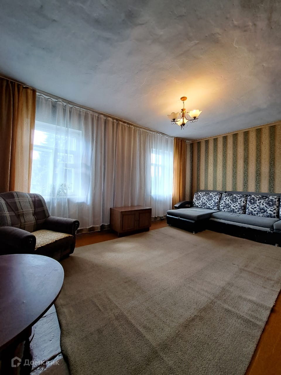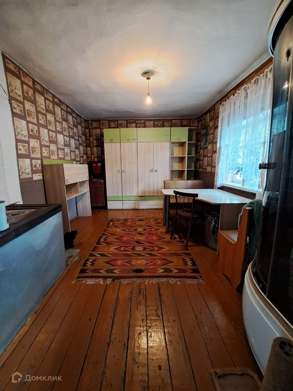 Квартира находится в шлакоблочном доме на двух хозяев, поэтому имеется земельный участок. Печное отопление, свет, вода, слив, погреб и подпол, все есть. В кухне стоит душевая кабина. Туалет - на улице, но все в ваших руках, сейчас при желании можно все решить. Есть запас угля и дров.