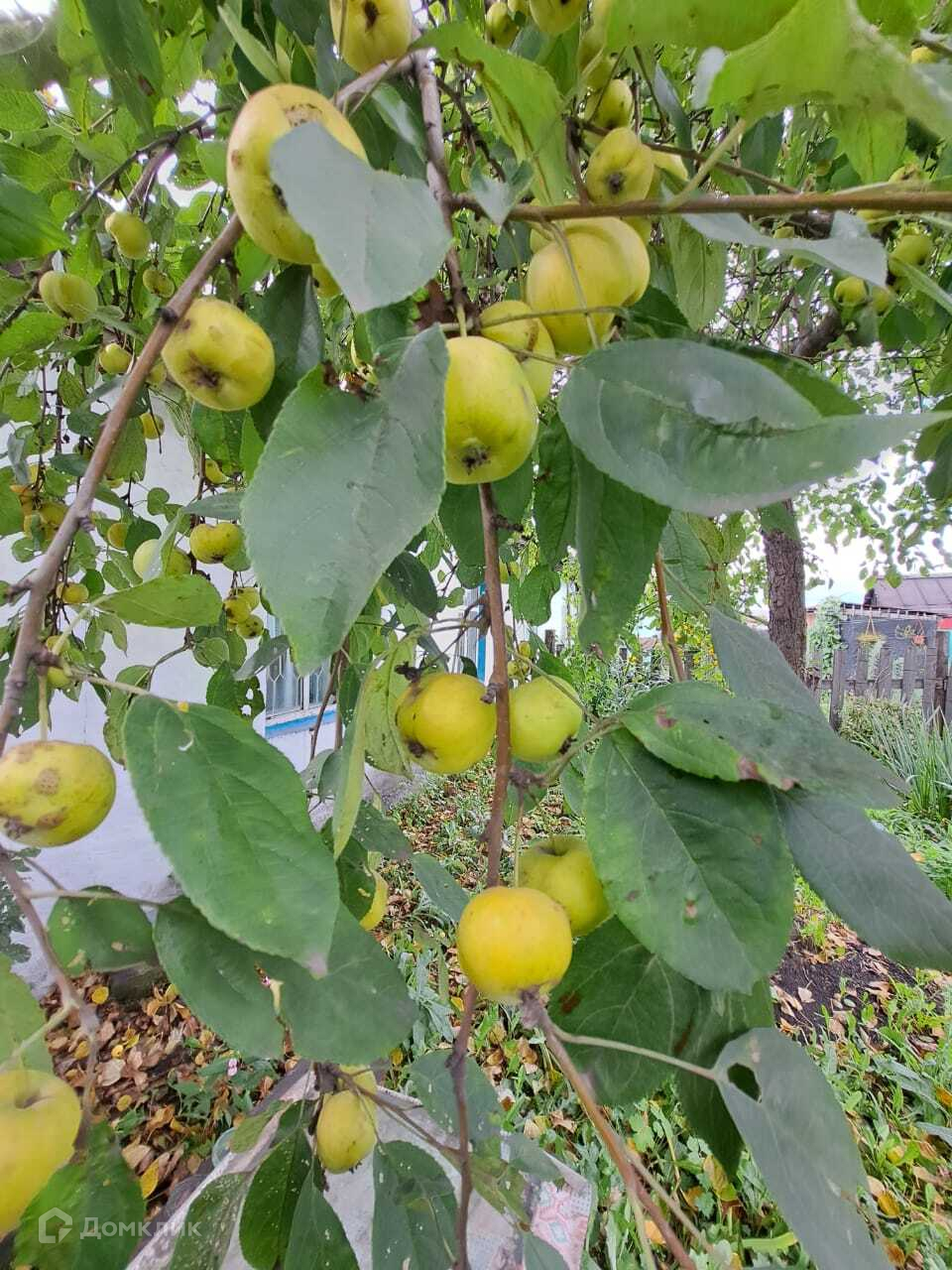 В огороде есть яблонька, полукультурка.