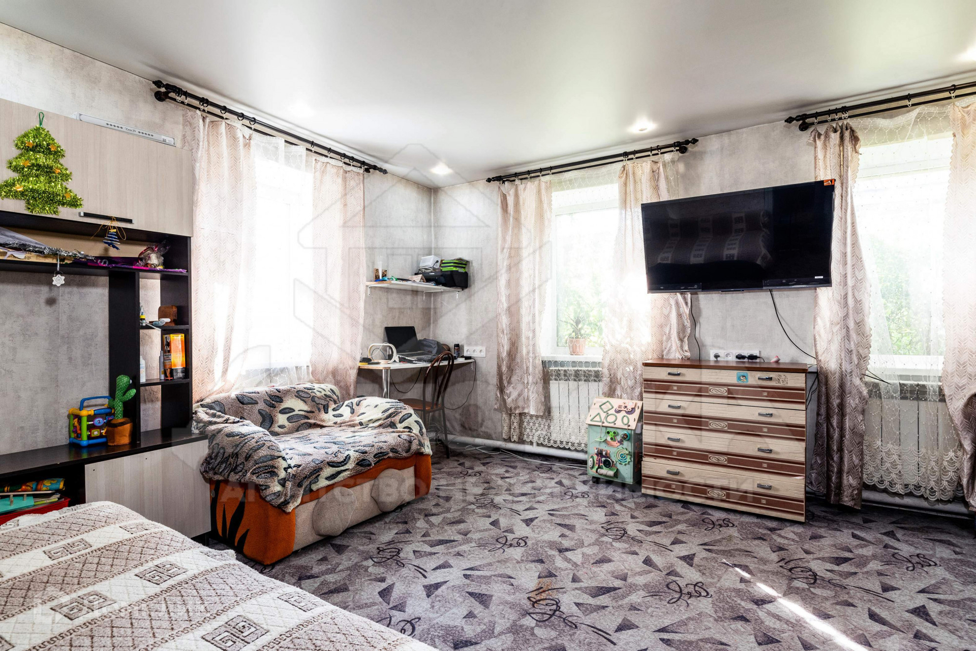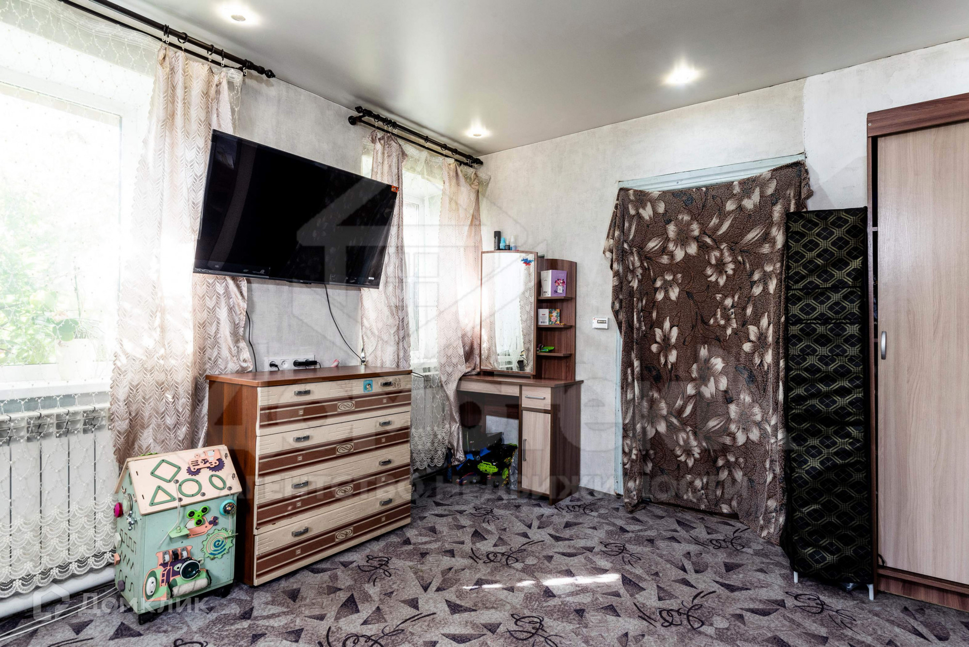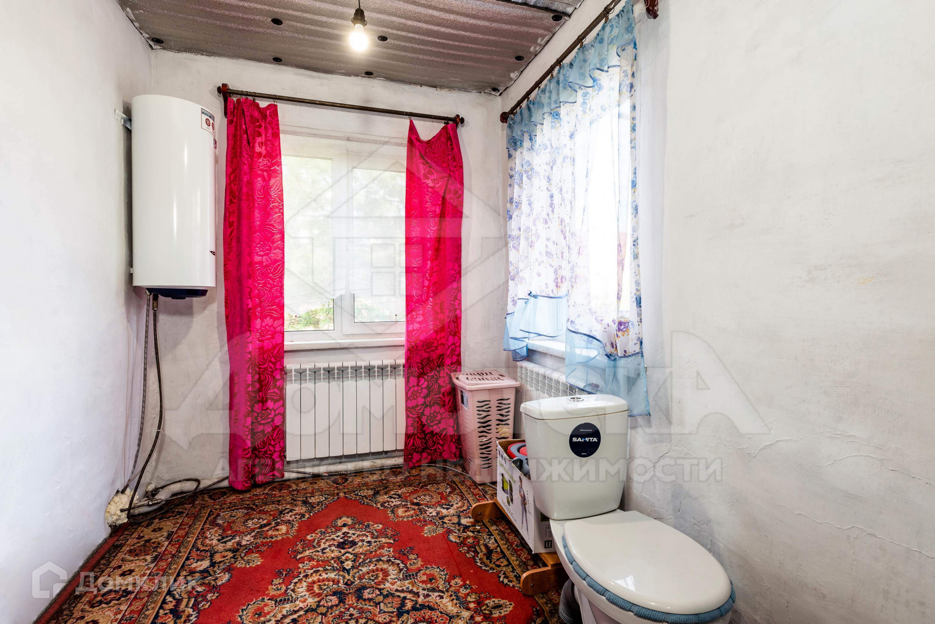 Дом из шлакоблока, снаружи обшит металлическим сайдингом, крыша покрыта профлистом. Четыре года назад полностью заменили электропроводку, выполнили косметический ремонт в доме: во всем доме окна ПВХ, алюминиевые радиаторы, в комнатах настелен линолеум, новые обои, натяжные потолки с точечными светильниками. В этом году установили электрический котел, т.е. дом можно полностью отапливать при помощи электричества. В дом заведено ГАЗОВОЕ ОБОРУДОВАНИЕ, установлен газовый котел, переход на газовое отопление будет осуществлен в ближайший год.