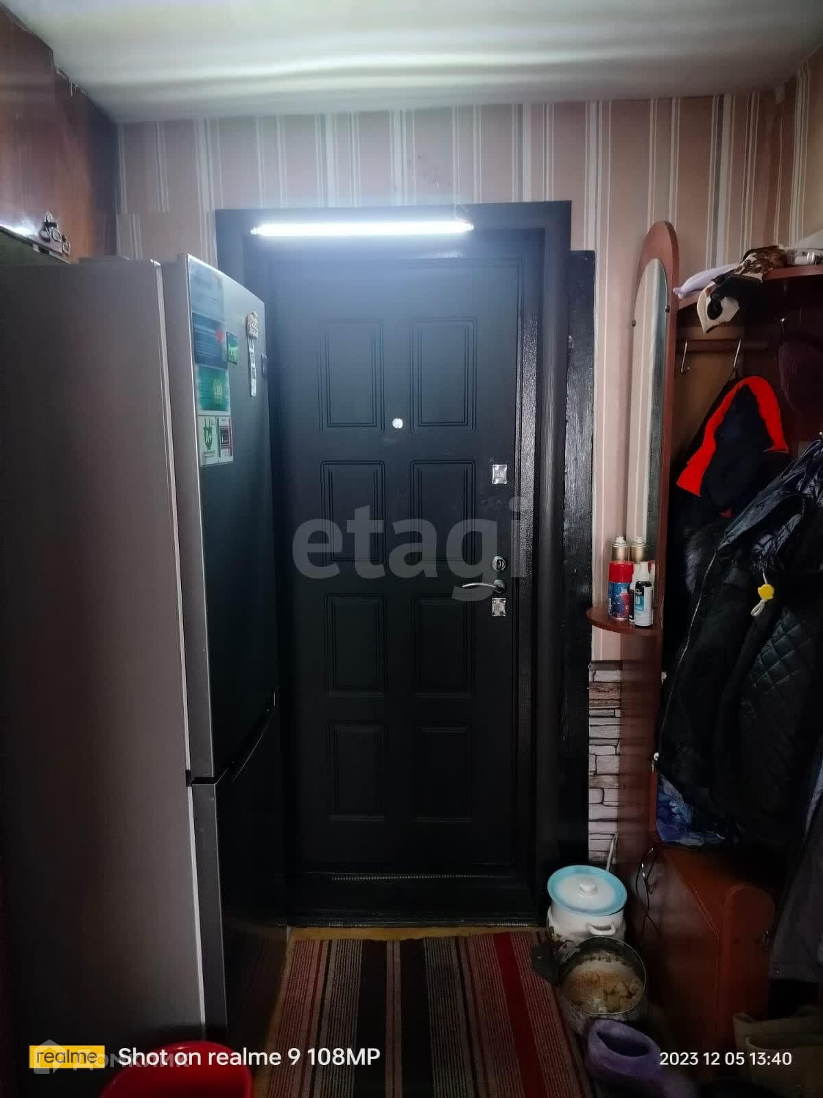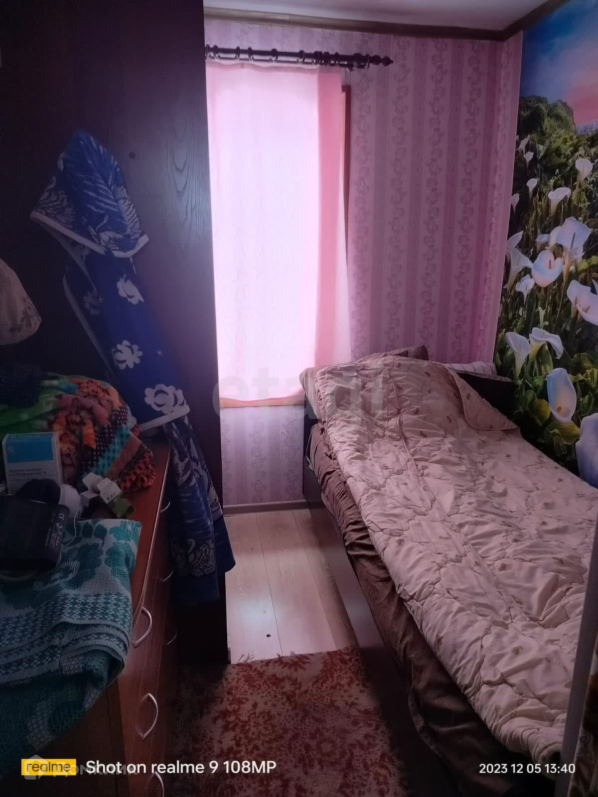 На стенах обои.