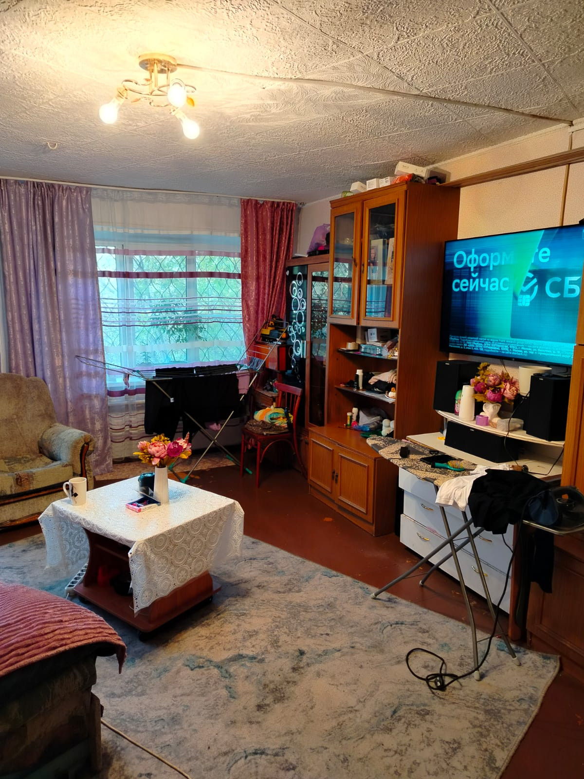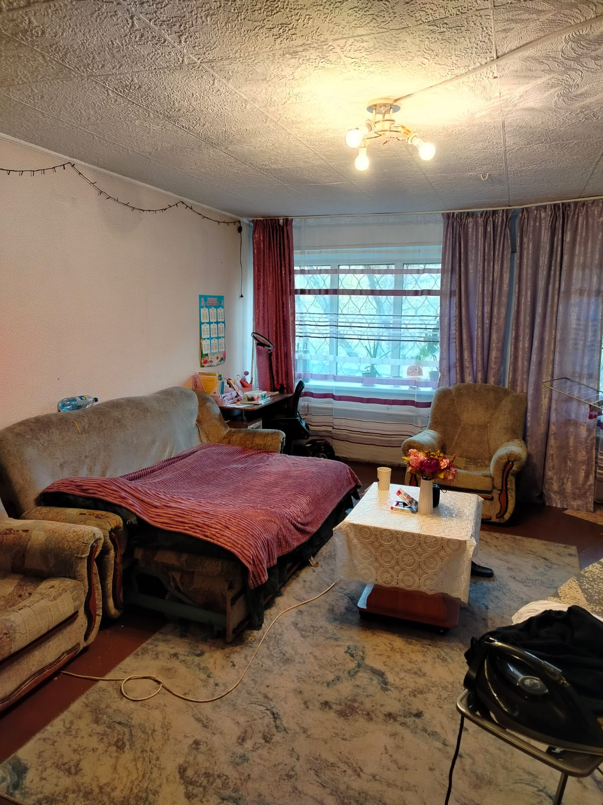 Комната очень светлая, так как два пластиковых хороших окна, теплая.