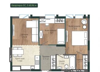 Общая площадь: 61 м2