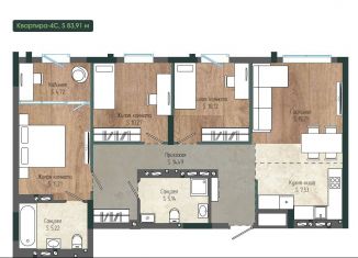 Продажа четырехкомнатной квартиры, 83.9 м2