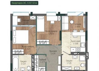 Продается трехкомнатная квартира, 57.1 м2