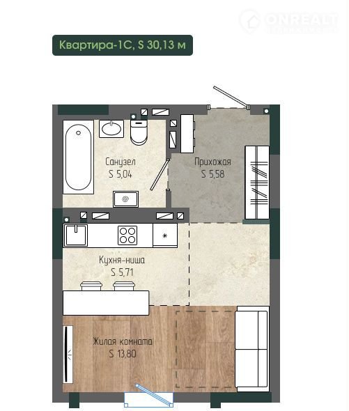 Общая площадь 30.1 м2