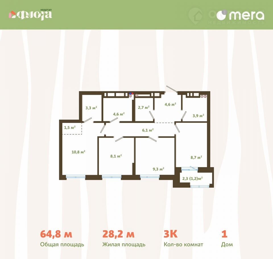 Общая площадь 64.8 м2