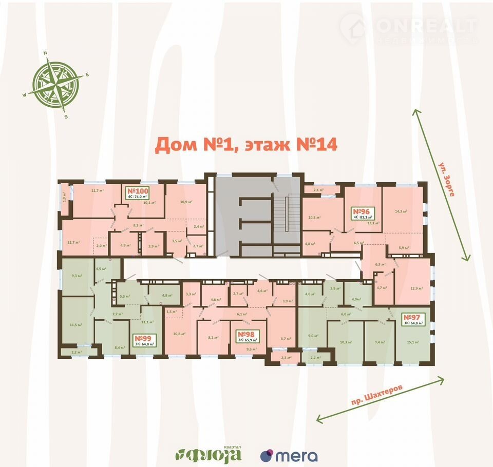 3-комнатная квартира, 64.8 м2, этаж 14 / 15, на продажу в Новокузнецке, улица Зорге, 17