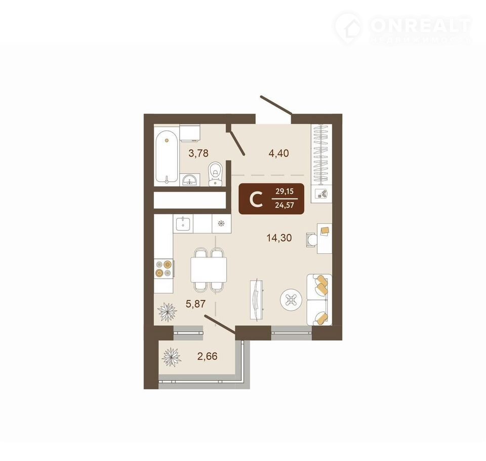 Общая площадь 29.2 м2