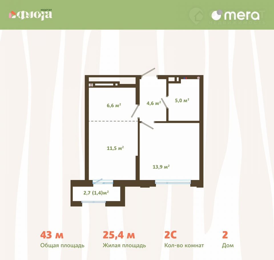Общая площадь 43 м2