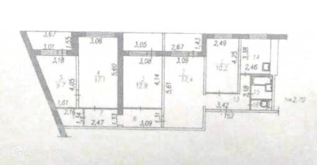 Жилая площадь 67.2 м2