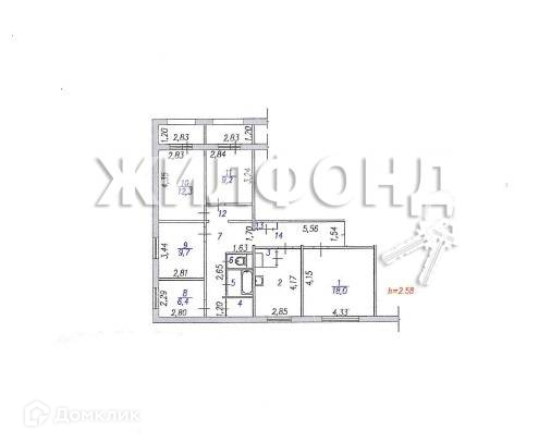 Жилая площадь 55.6 м2